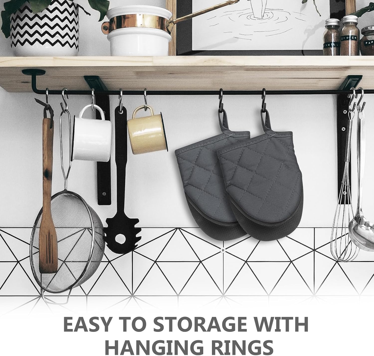 - 【Heat-Resistant】- Made of durable neoprene and cotton, offering protection up to 500°F/260℃. They will protect your hands from heat, steam and grease. These mitts measure 5.5 inches x 7 inches, perfect for small hands.