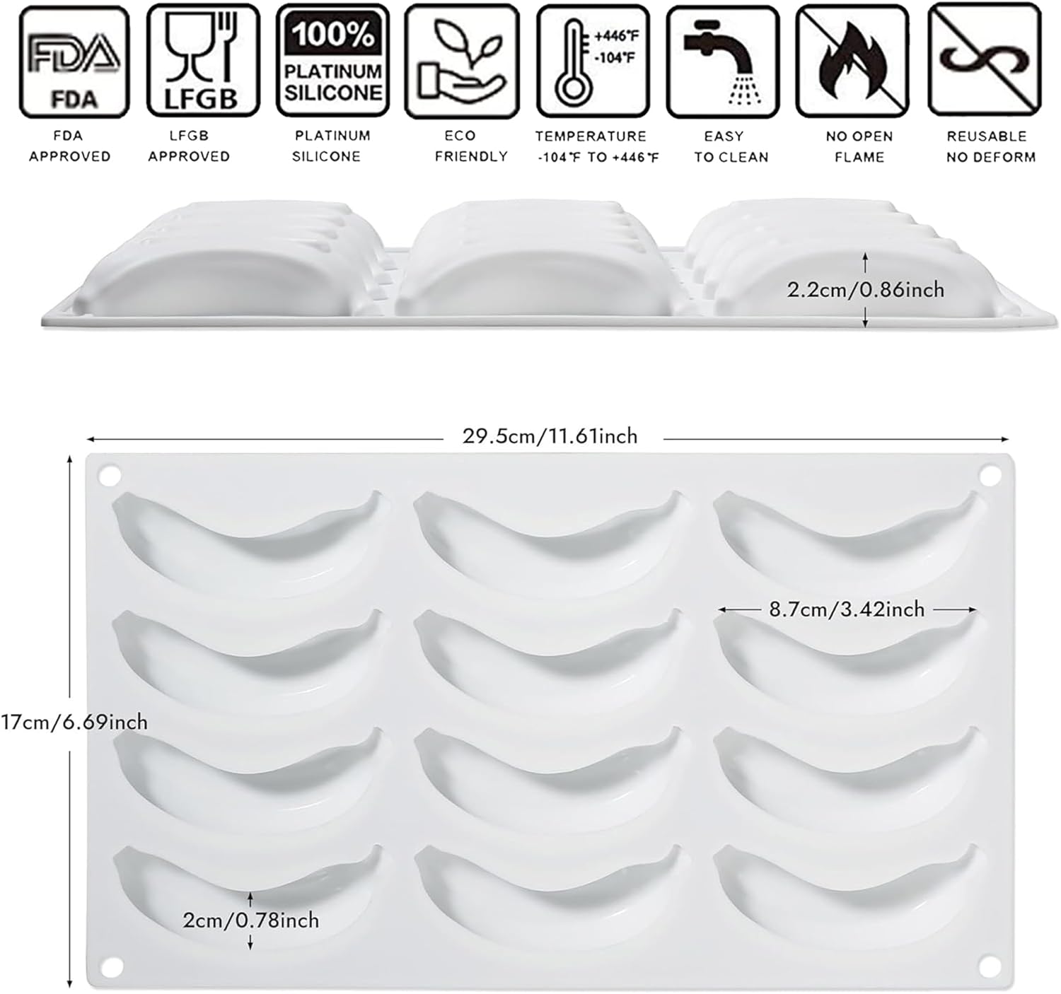- SAFETY AND DURABLE - All Silicone molds are made of 100% food-grade silicone. And wide heat temperature range is -76℉ to 446℉. Excellent durability, these silicone baking molds can repeatedly use 3500times, not out of shapes. our molds can also be cleaned in the dishwasher