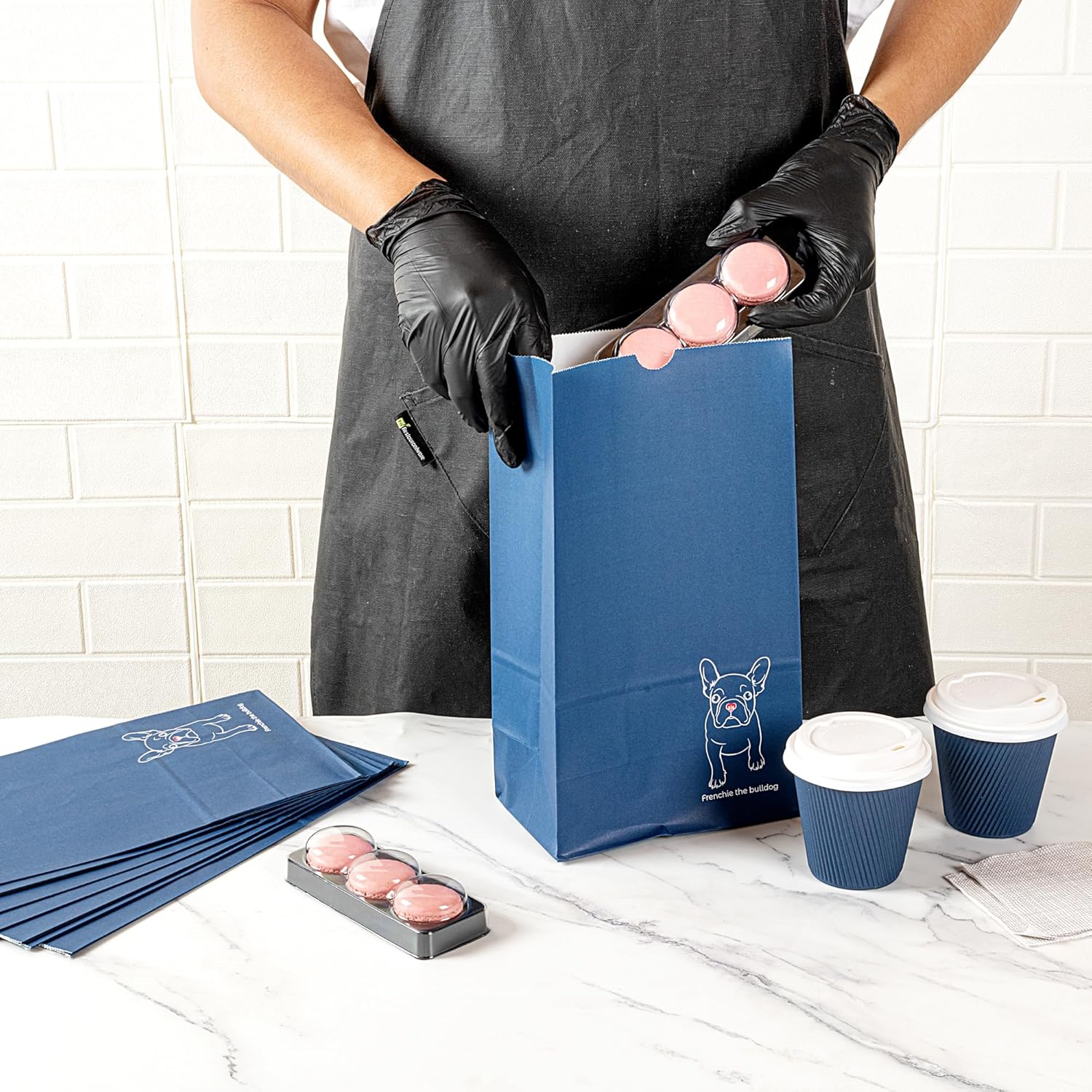 - STYLISH DESIGN: With an adorable Frenchie design, these paper bags boast a classic look that blends into any environment. These are great for taking food or other objects to any occasion!