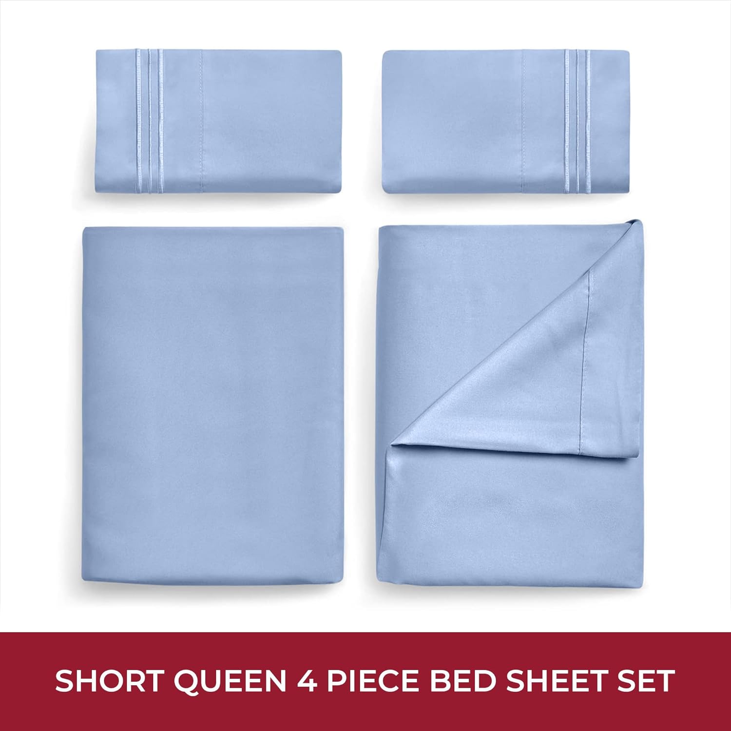 Mellanni RV Short Queen Sheets - 4 PC Iconic Collection Bedding - Hotel Luxury, Extra Soft, Cooling Bed Sheets - Deep Pocket up to 10 inch (RV/Short Queen, Sky Blue)