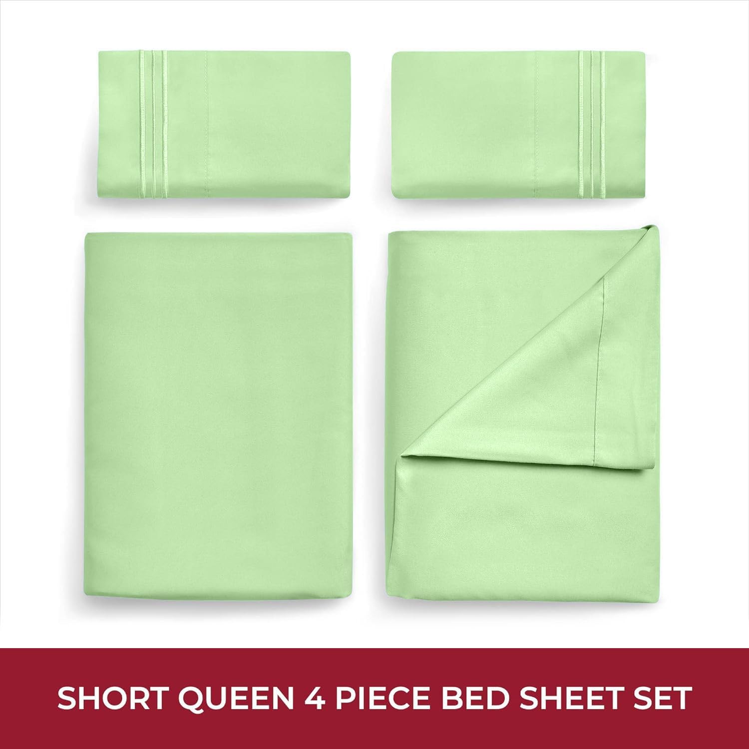 Mellanni RV Short Queen Sheets - 4 PC Iconic Collection Bedding - Hotel Luxury, Extra Soft, Cooling Bed Sheets - Deep Pocket up to 10 inch (RV/Short Queen, Pistachio)
