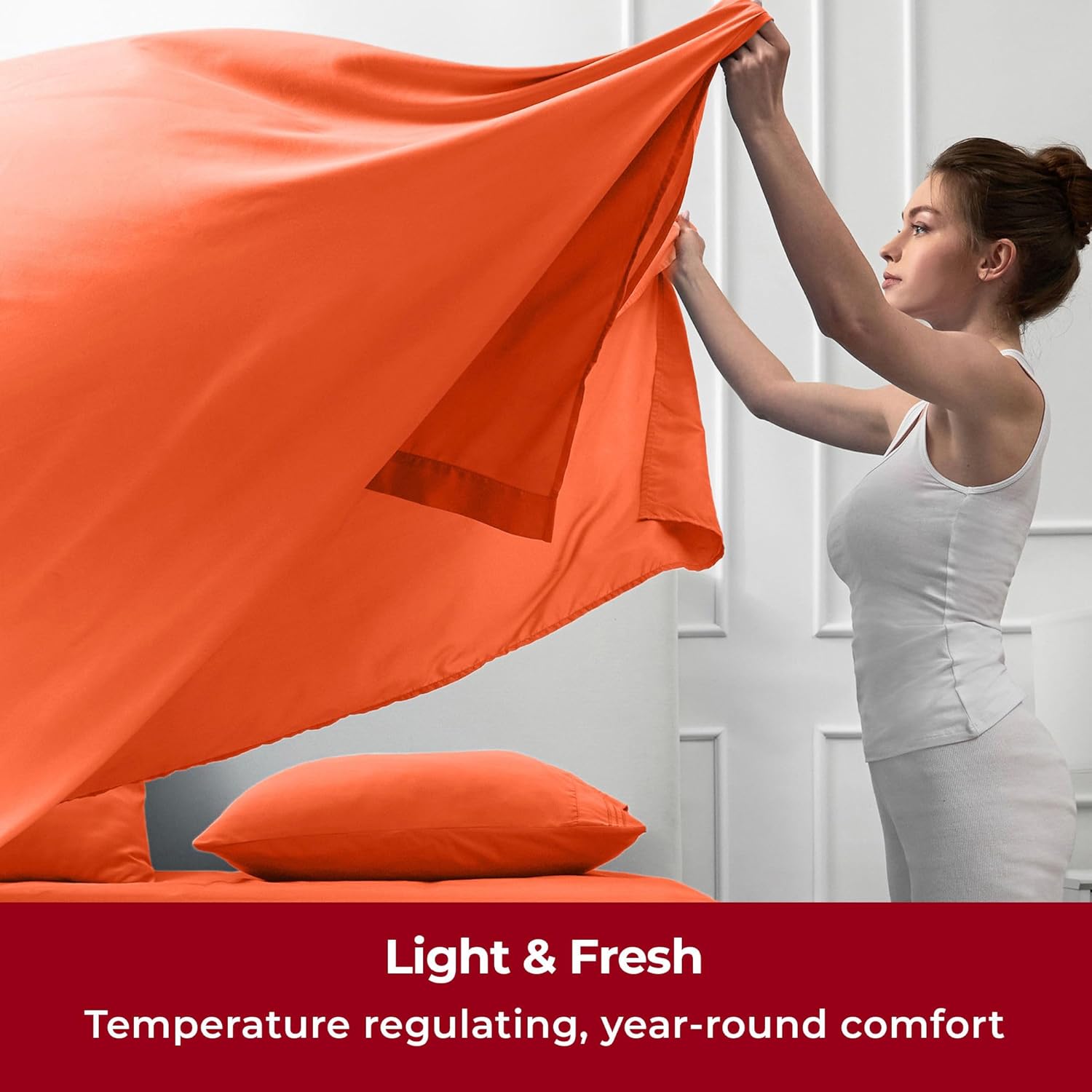 Mellanni Twin Sheets Set - 3 PC Iconic Collection Bedding - Hotel Luxury, Extra Soft, Cooling Bed Sheets - Wrinkle, Fade, Stain Resistant (Twin, Poppy Orange)