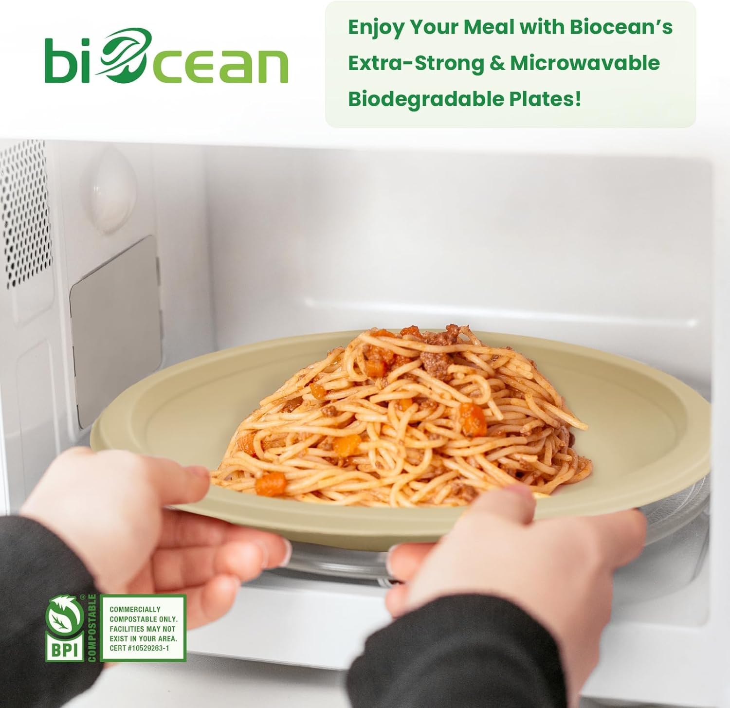 - NATURAL MATERIAL: Certified by BPI, these compostable plates are made from natural bagasse and are 100% biodegradable, they do not contain plastics or any chemicals and therefore do not pollute or harm the environment. Using these natural biodegradable plates not only meets daily needs but also contributes to environmental protection