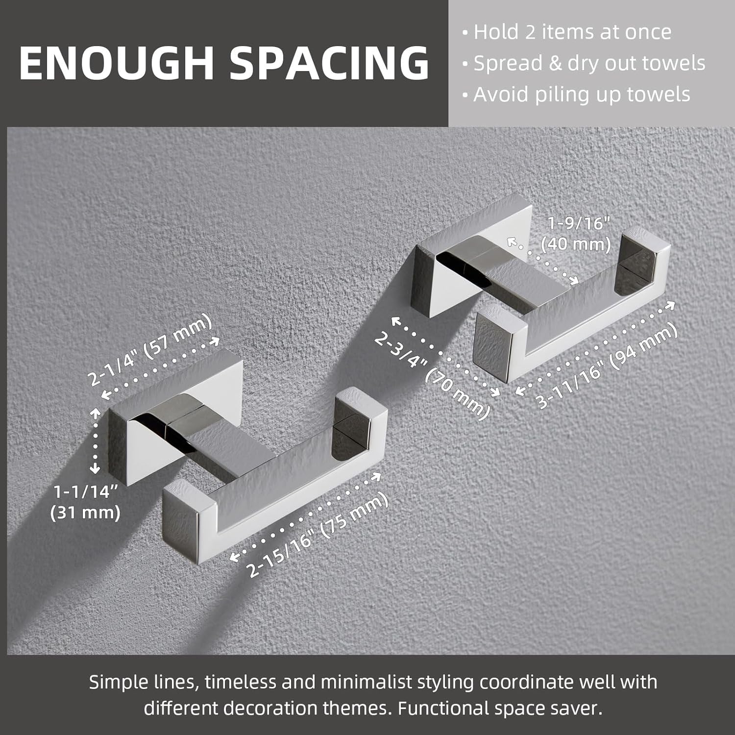 - OPTIMIZE STORAGE SPACE: double hook provides extra space, ideal for holding bath towels, ties, dog leashes, bags or other stuff, overall size (L*W*H) 3-11/16" x 2-3/4" x 1-1/4", please check the size before ordering