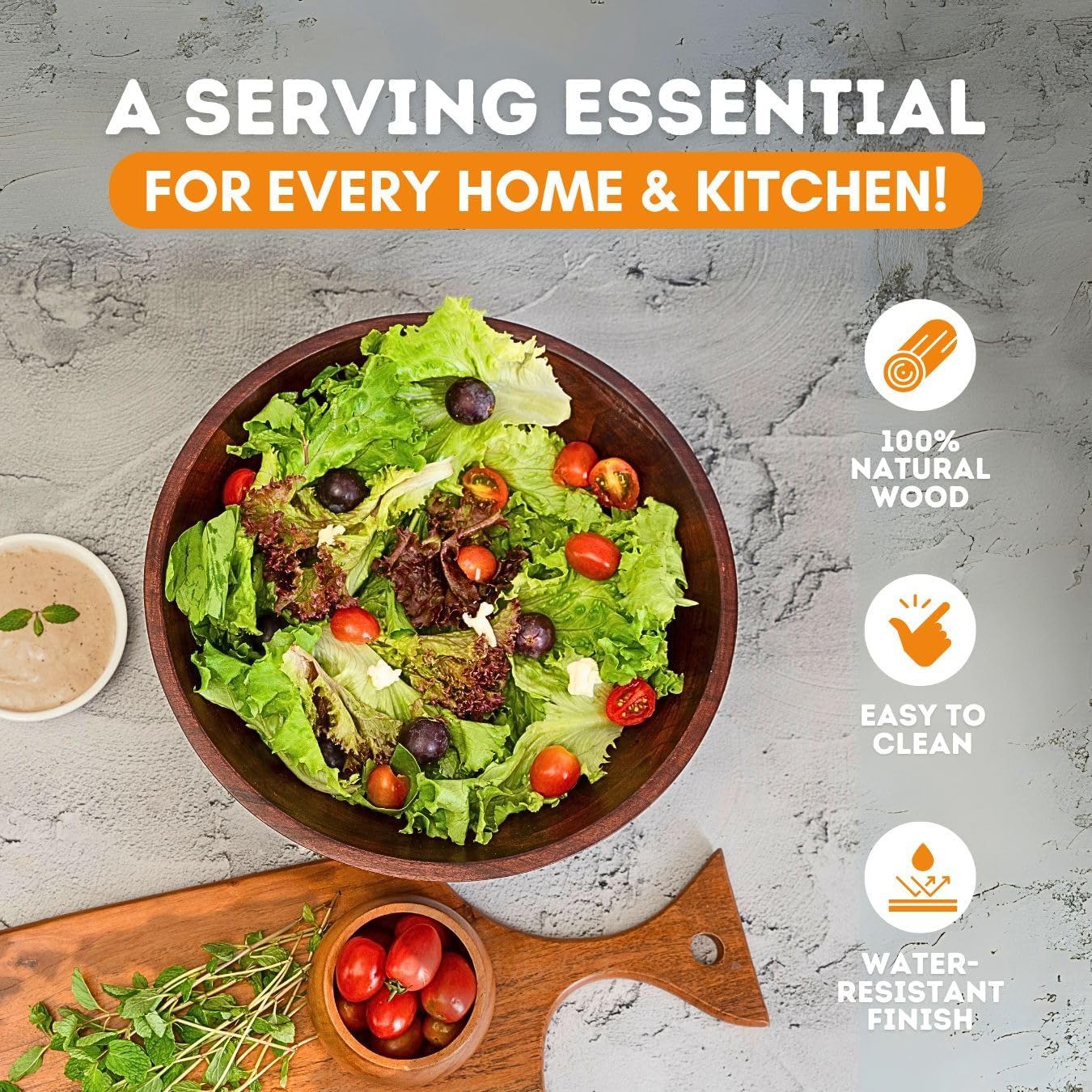 - PERFECT SIZE: Our fruit bowl measures 12” x 4" x 12" which is ideal for serving your favorite salad. This salad bowl set wooden is ideal for pasta bowls, cereal bowls, and fruit bowls. Our large wooden bowl creates the ultimate dinner setting!