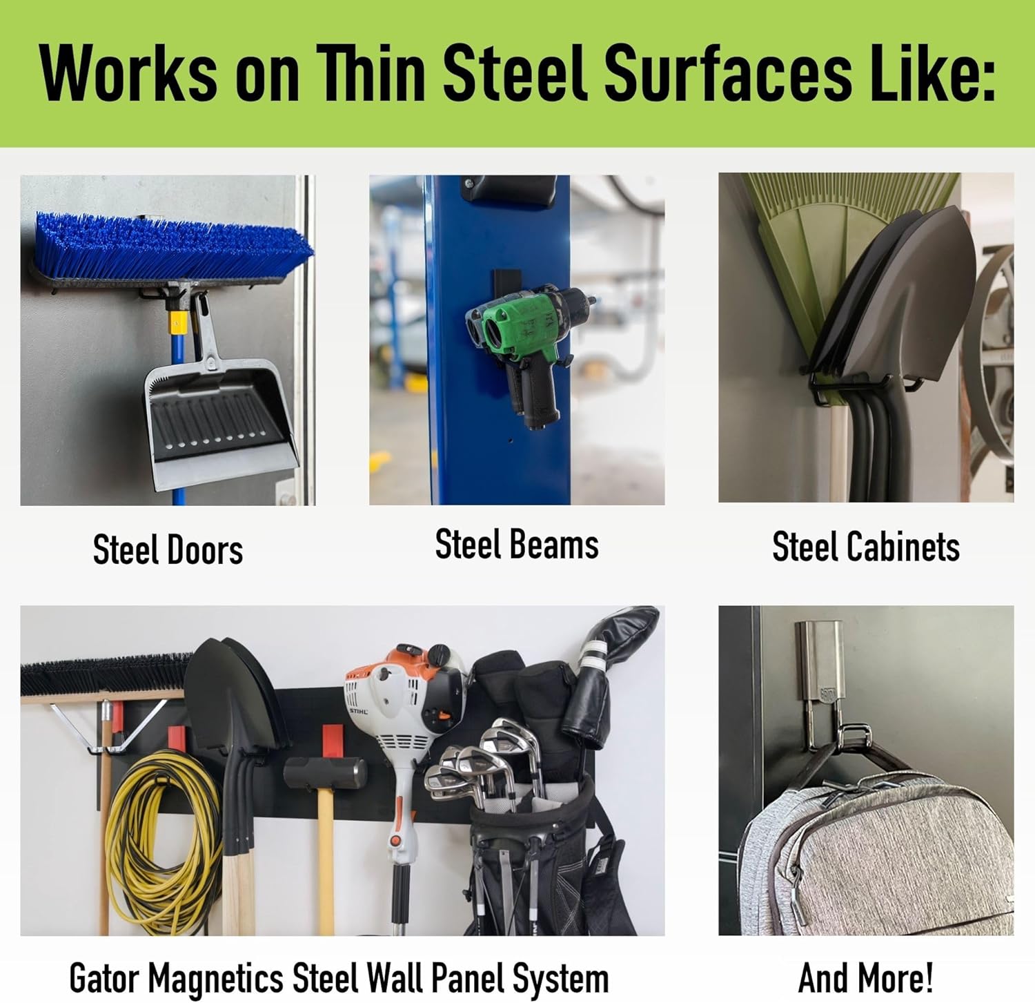 - The Most Flexible Garage and Home Organization System: In a world of rigid storage, Gator lets you organize your way; securing tools, cords, hoses, and gear with heavy-duty magnet hooks, whether in the garage, locker, van, or workshop