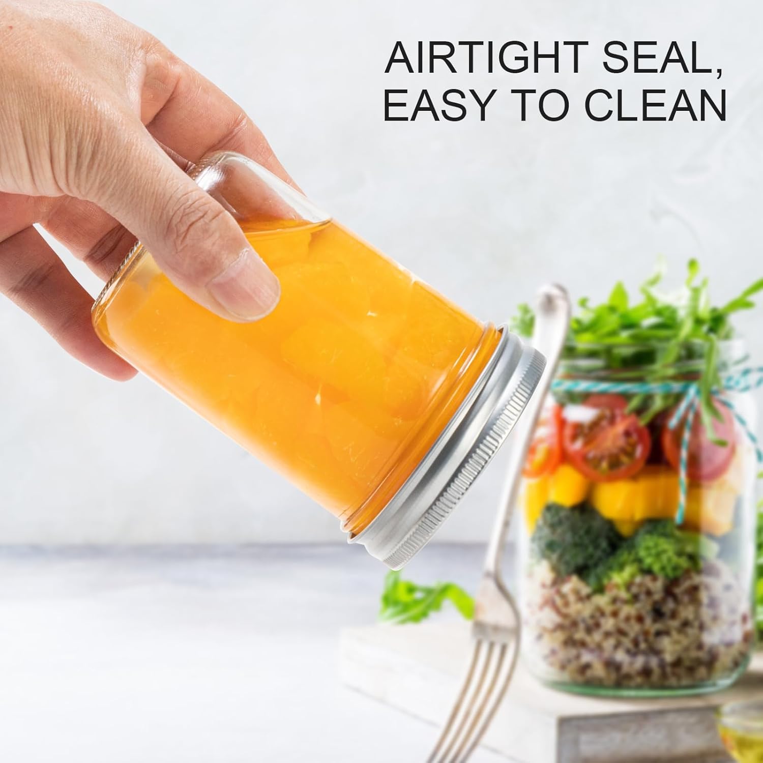 - ✅ THICK GLASS - These canning jars 8 oz are durable. Refrigerate up to 3 weeks, freeze up to 1 year, fresh preserve and store up to 1 year. The small mason jars with lids 8 oz are safe for water bath, dishwasher, freezer, and microwave. When use in microwave, please take out the lid.