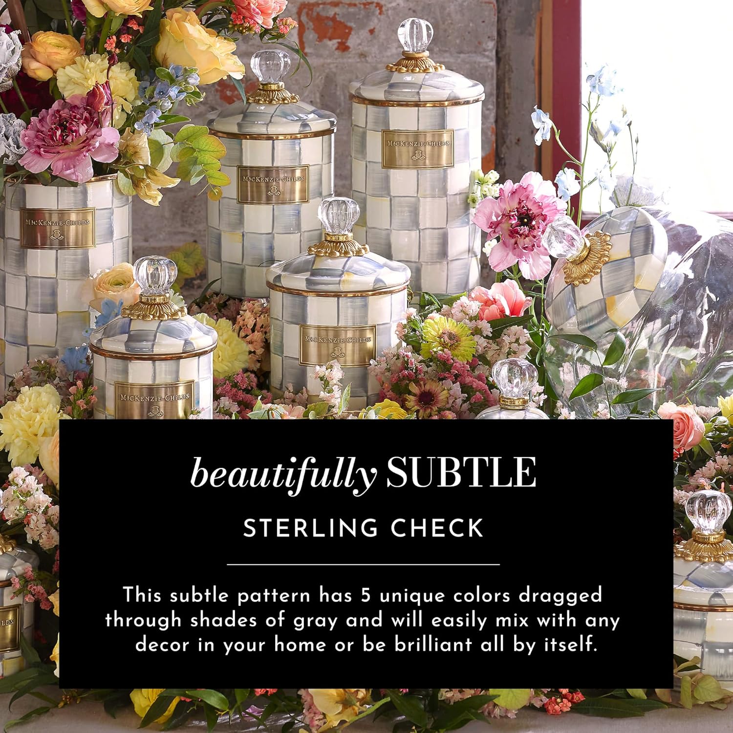 MACKENZIE-CHILDS Enamel Everyday Bowl, Serving Bowl for Entertaining, Extra-Small, Gray-and-White Sterling Check, Set of 1