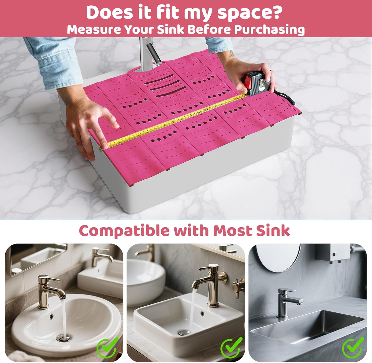 Bathroom Sink Cover for Counter Space, Sink Mat Foldable Sink Cover, Silicone Makeup Organizer Mat Space Saver, Small Bathroom & Rv Camper Travel Must Haves Accessories, Pink