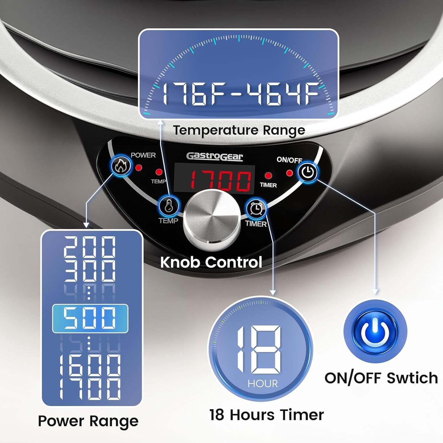 - 🕒18 Hours Timer Function:Flexible cooking with a timer that goes up to 1080 minutes. Simply rotate the knob to adjust—each forward turn of the dial adds 10 minutes, and each backward turn subtracts 1 minute. Whether you're preparing daily meals, slow-simmering hearty soups,etc