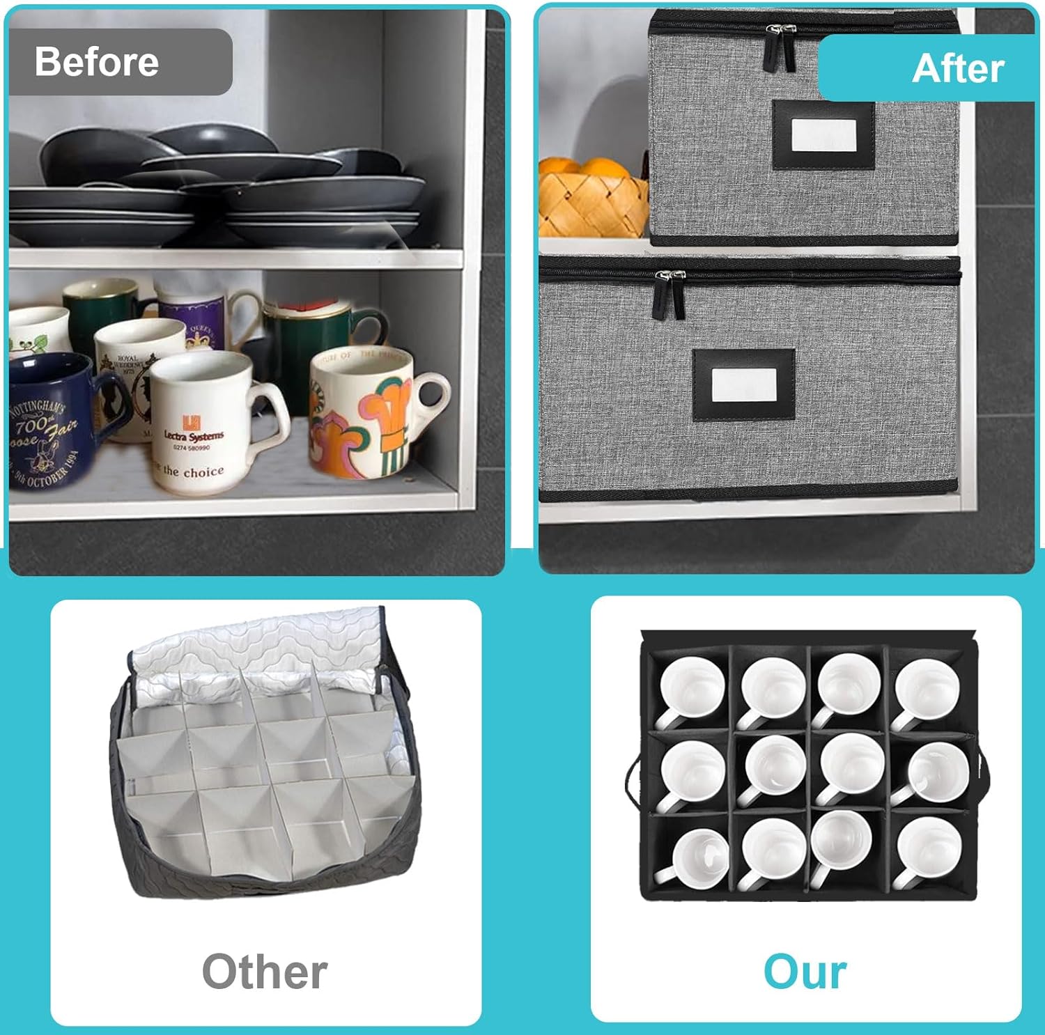 - Style : 1 Pack Cup Storage and 4 Dish Storage Quilted Hard Shell