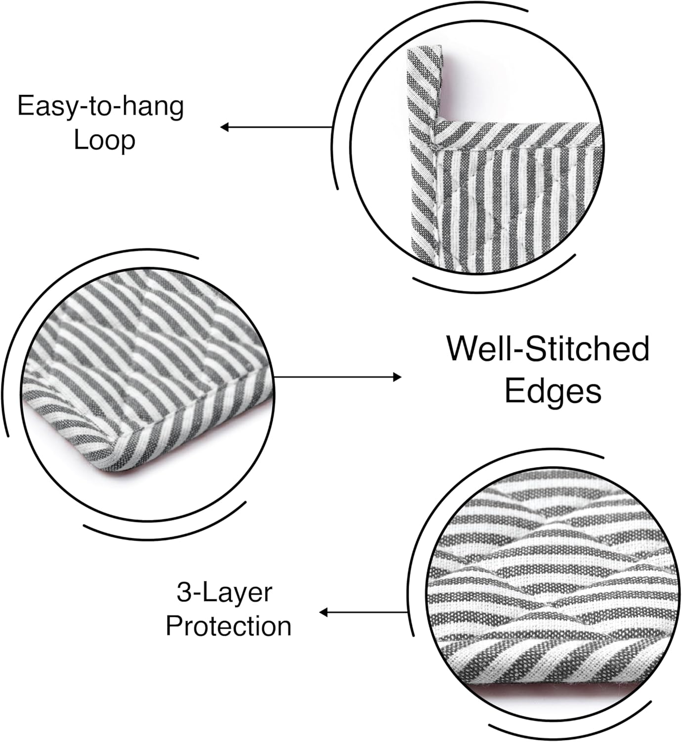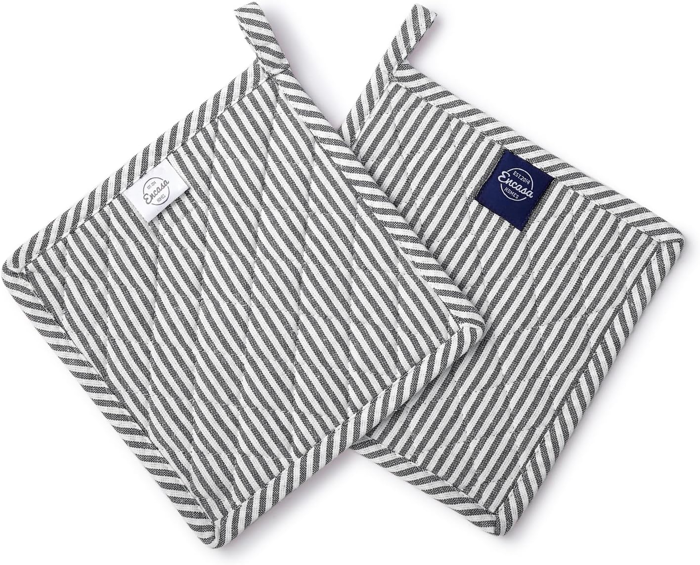Encasa XO 8 inches Oven Microwave Potholders (2 pc Set) for Kitchen Cooking & Baking - Heat Resistant, Thick & Safe, Protection of Hands from Hot Utensils - Ticking Black