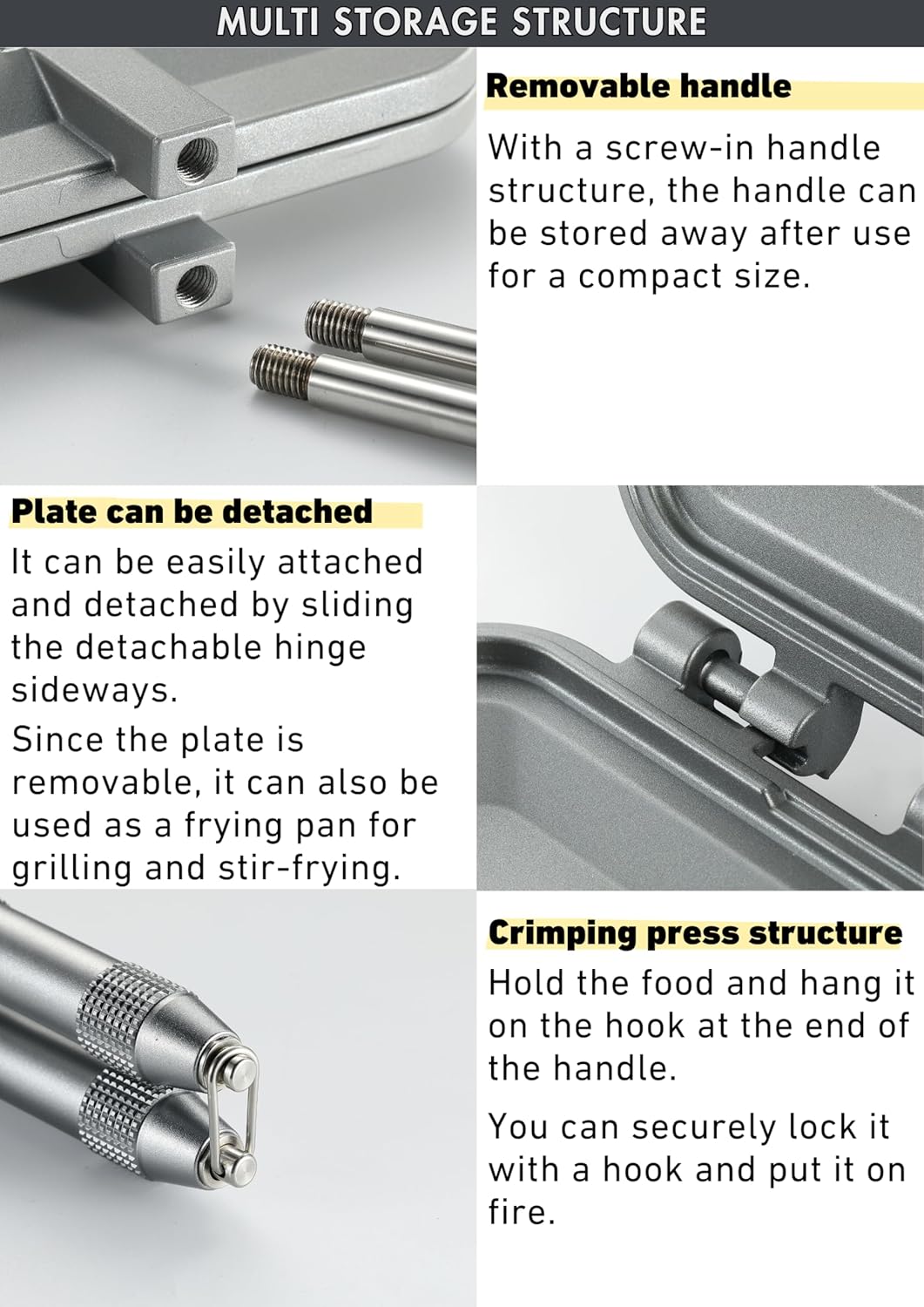 - 【Detachable Handles for Convenience】Featuring removable handles, this toaster provides added convenience for storage, transport, and cleaning, allowing you to customize your outdoor cooking experience effortlessly.