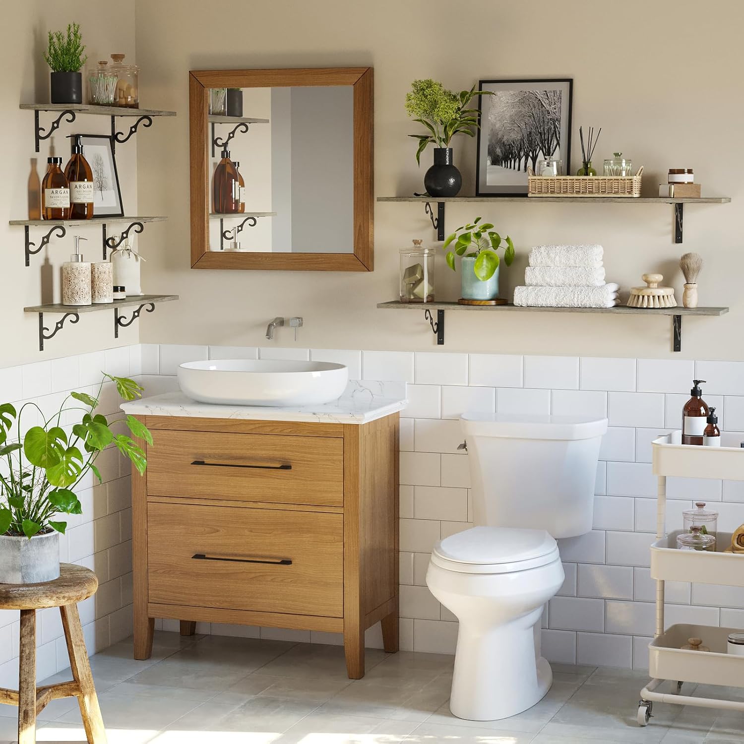 - ăWell MadeăMade of premium particleboard and expertly designed metal brackets, sturdy and durable. Thicker brackets bring added stability and stronger load-bearing capacity(up to 22lbs), supporting the wood shelves without sagging over time. All edges are well-finished for smoothness