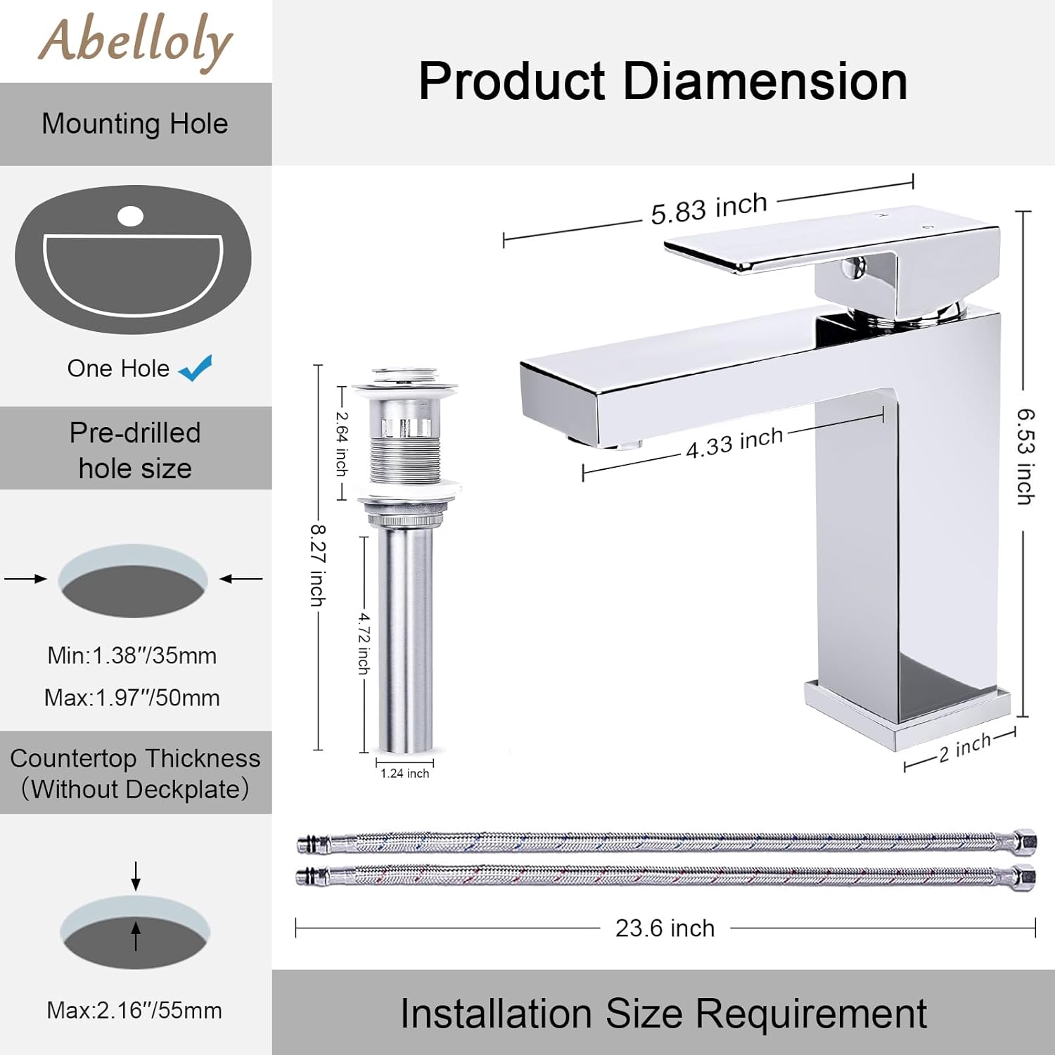 - 【Solid Brass Construction】Abelloly chrome bathroom faucet uses a solid brass body with a high-quality finish, offering excellent corrosion and rust resistanceIts service life is also 50% longer than that of stainless steel.