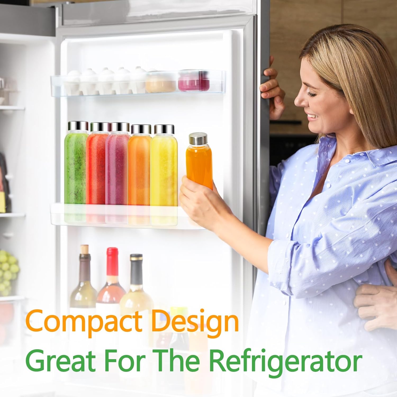 - STAY HYDRATED WHEREVER YOU GO: The slim and portable design means you can take your glass juice bottles with cap everywhere, perfectly for garden parties, homemade drinks, weddings, picnics, school, work, gym, fitness, yoga and beach trips. Easily store in the fridge, lunch bar or car cup holder. The wide mouth on these Zukro glass water bottles make everything from filling to cleanup easy and dishwasher safe.