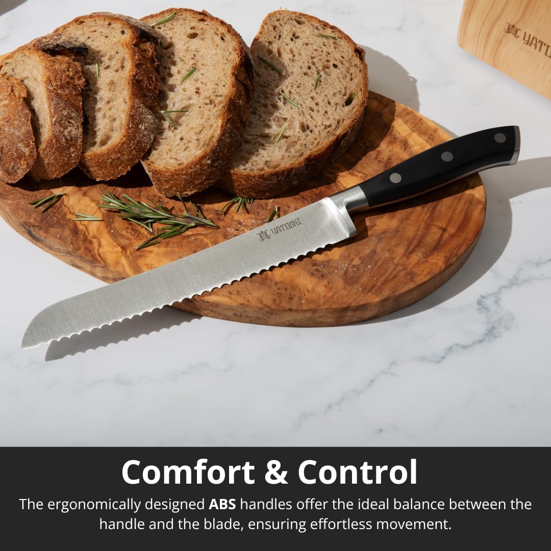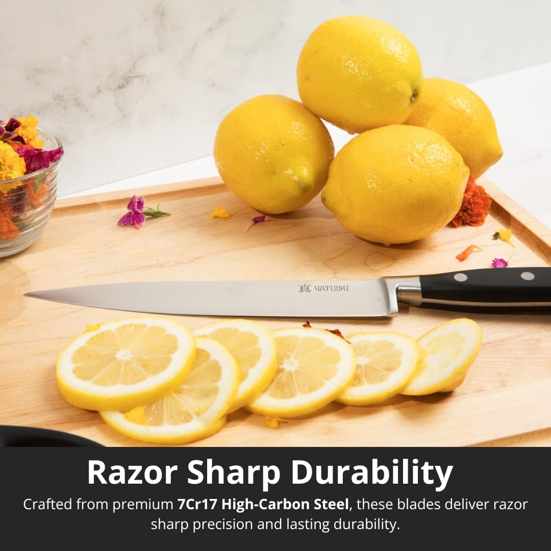 Yatoshi 15 Piece Black Knife Block Set - Pro Kitchen Knife Set Ultra Sharp High Carbon Stainless Steel with Ergonomic Handle