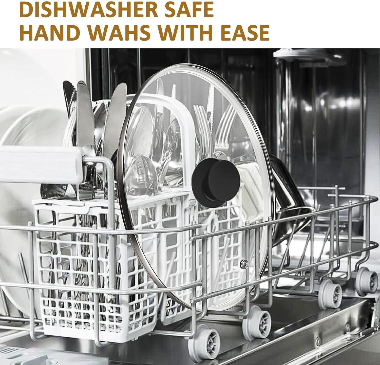 - ✔ TEMPERED GLASS & STAINLESS STEEL RIM – The glass lids are made of tempered glass,strong and durable. The edge of the lid is made with stainless steel material, make sure the safe cooking without rust (Please contact us if any broken during shipping)