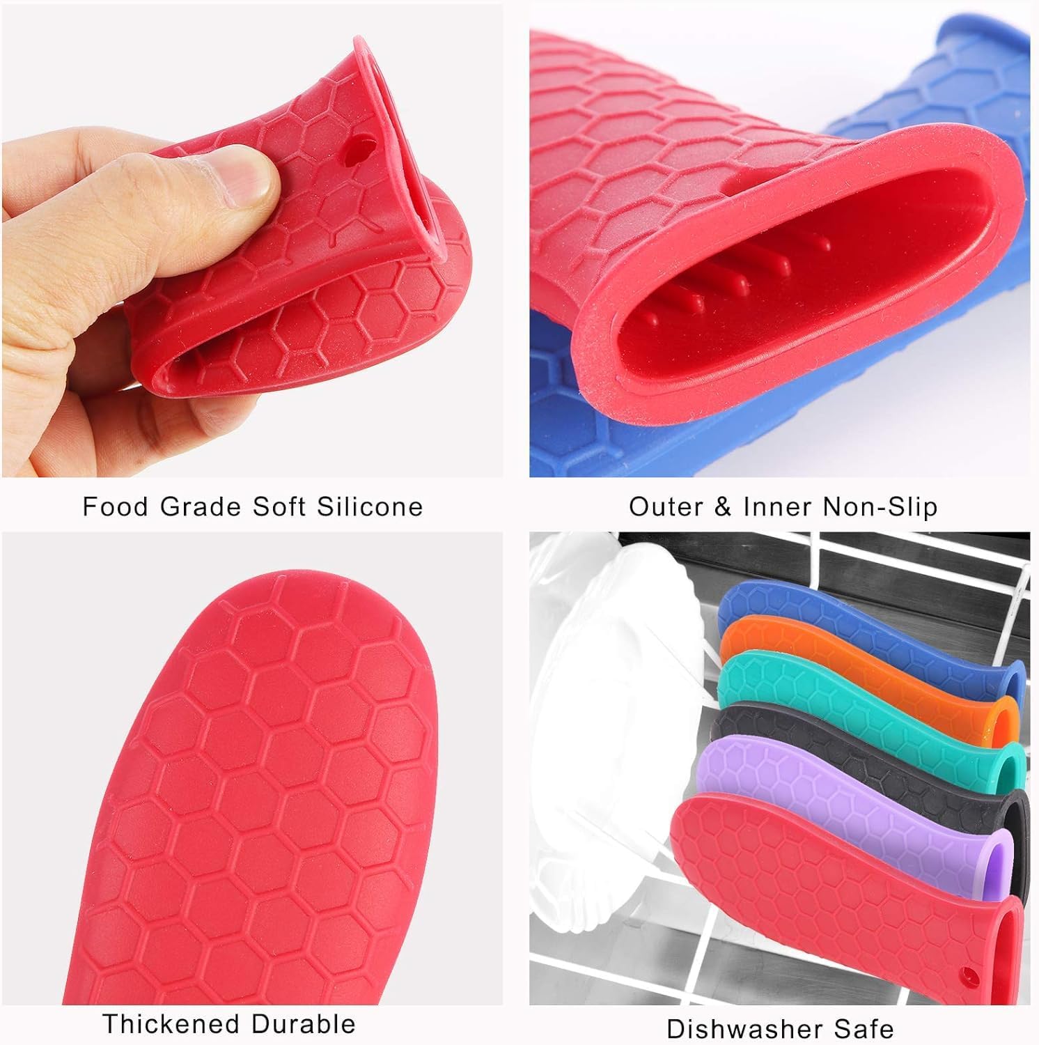 - KEEP SAFE : Removable silicone sleeve slips easily onto hot frying pan & pot hand grips, protects your fingers from burning. Safer to use than typical cloth mitts & small pot holders.keep your family safe ,for home wife,kids health gift.