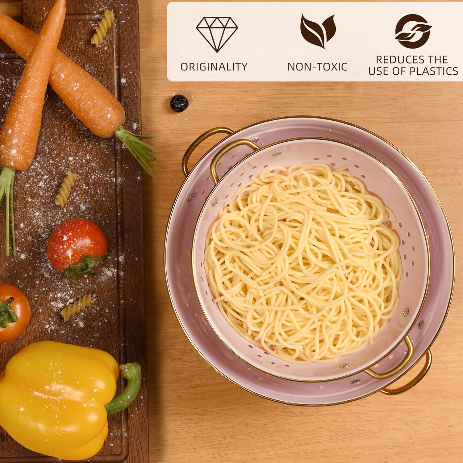 - 【Good Quality Material】: Colander is made of durable metal, with food-safe powder coated, even after long time using, it wont be rusted.