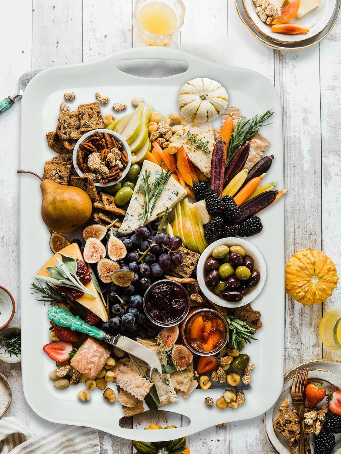 - 20-INCH LARGE SERVING TRAYS: with a dimension of 20’’ x 13’’ x 1.2’’, it almost serves for all-purpose when you use this platter, which has enough room for whole chicken or turkey; and definitely can be used it as a food tray to serve more dessert, fruits at big family gathering or entertaining