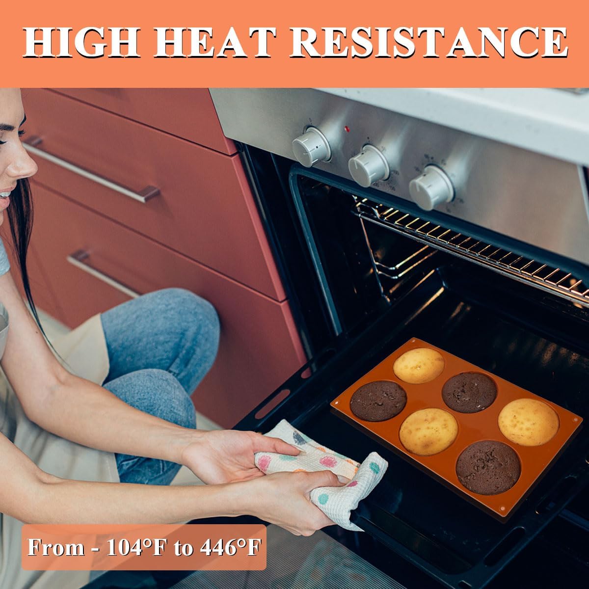 - FOOD SAFE: Muffin top pans non stick was made of high quality food grade silicone, nontoxic materials, no harmful substance release in high temperature, BPA FREE.