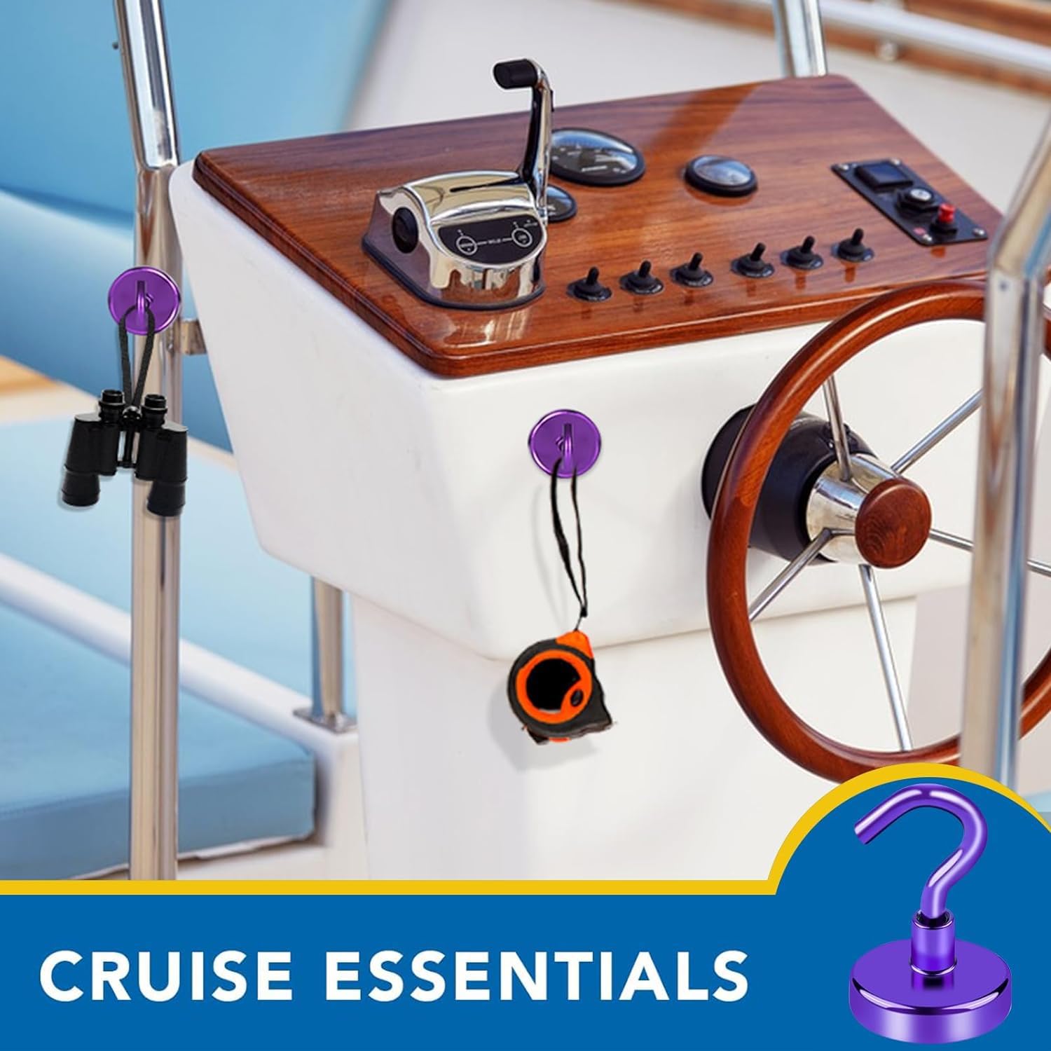 - 【MAGNET HOOKS】With our magnetic hooks, you can get over 80LBS of pulling force vertically and 27LBS horizontally. These colorful metal magnetic hooks for cruise essentials are very sturdy and perfect for hanging the items you need to make your life easier.