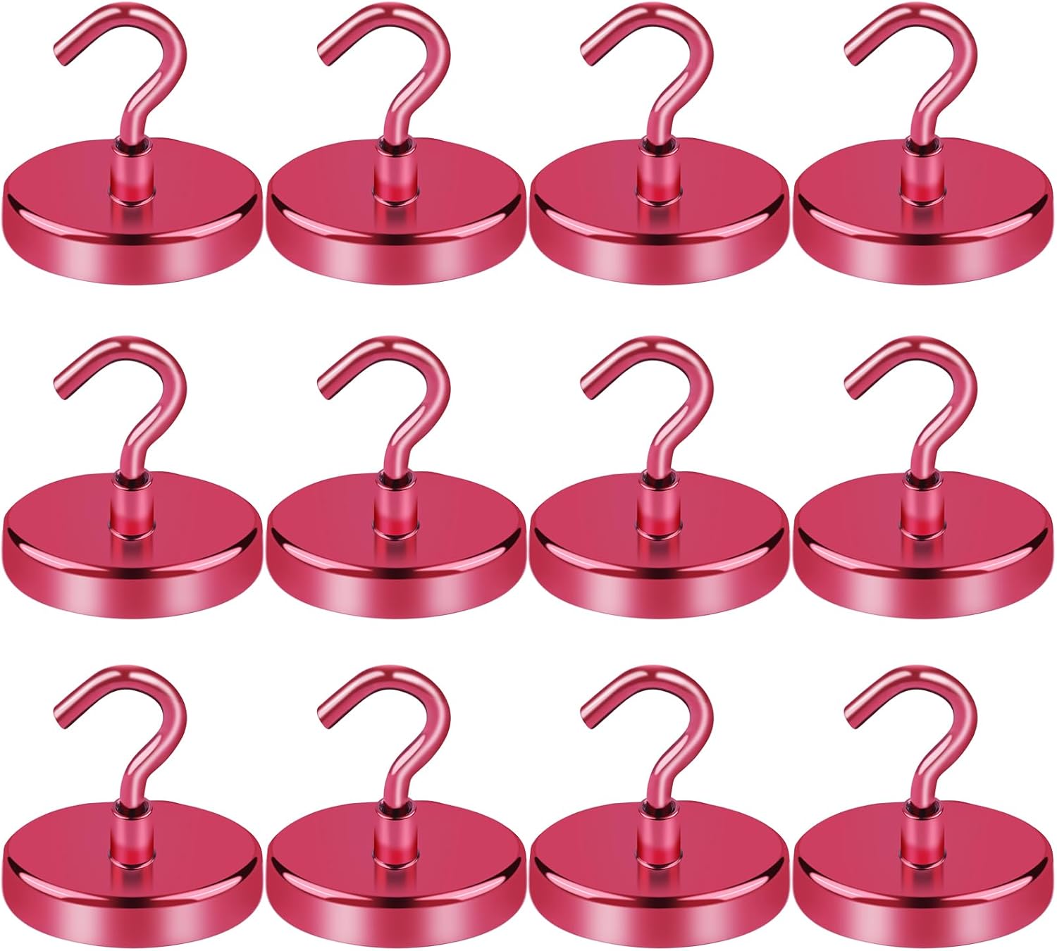 LOVIMAG Cruise Ship Essentials - 150Lbs Heavy Duty Hooks, Red Magnetic Hooks for Cruise Cabins - 12 Pack