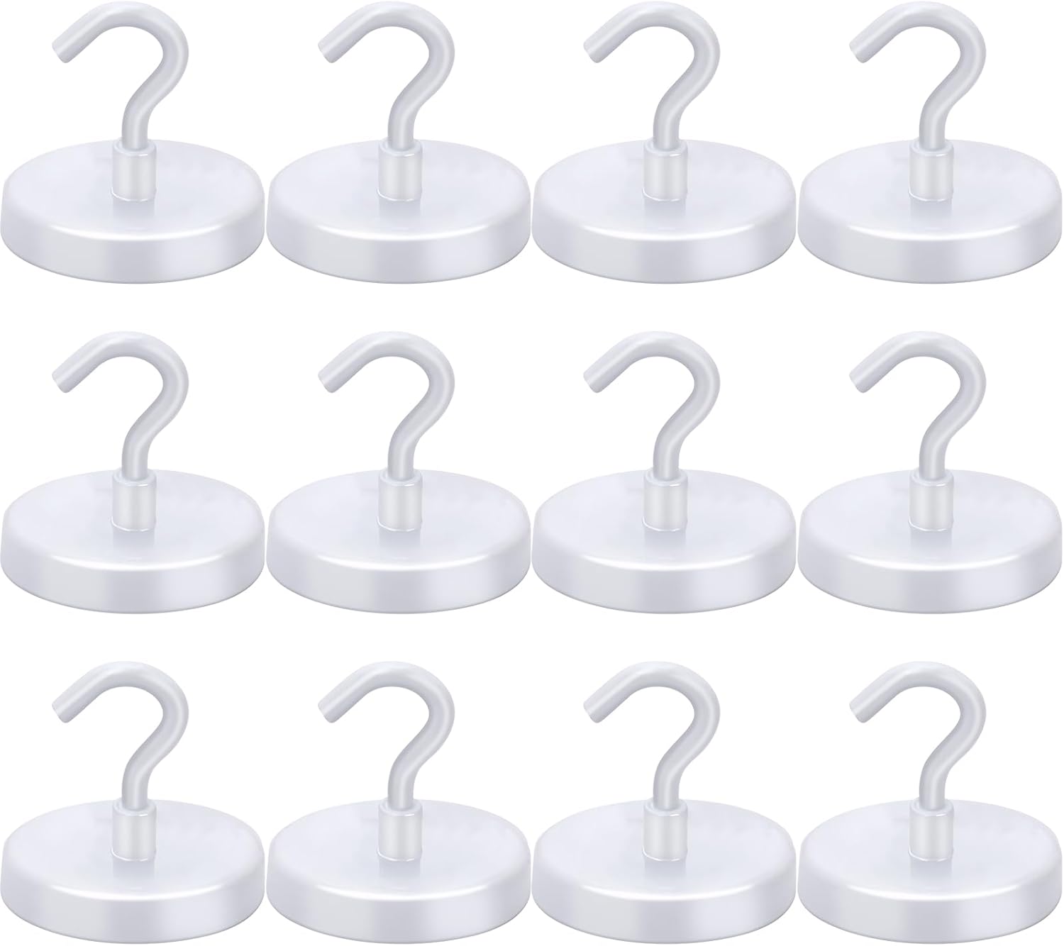 LOVIMAG Cruise Ship Essentials - 150Lbs Heavy Duty White Magnetic Hooks for Cruise Cabins - Strong Hanging Hooks - 12 Pack