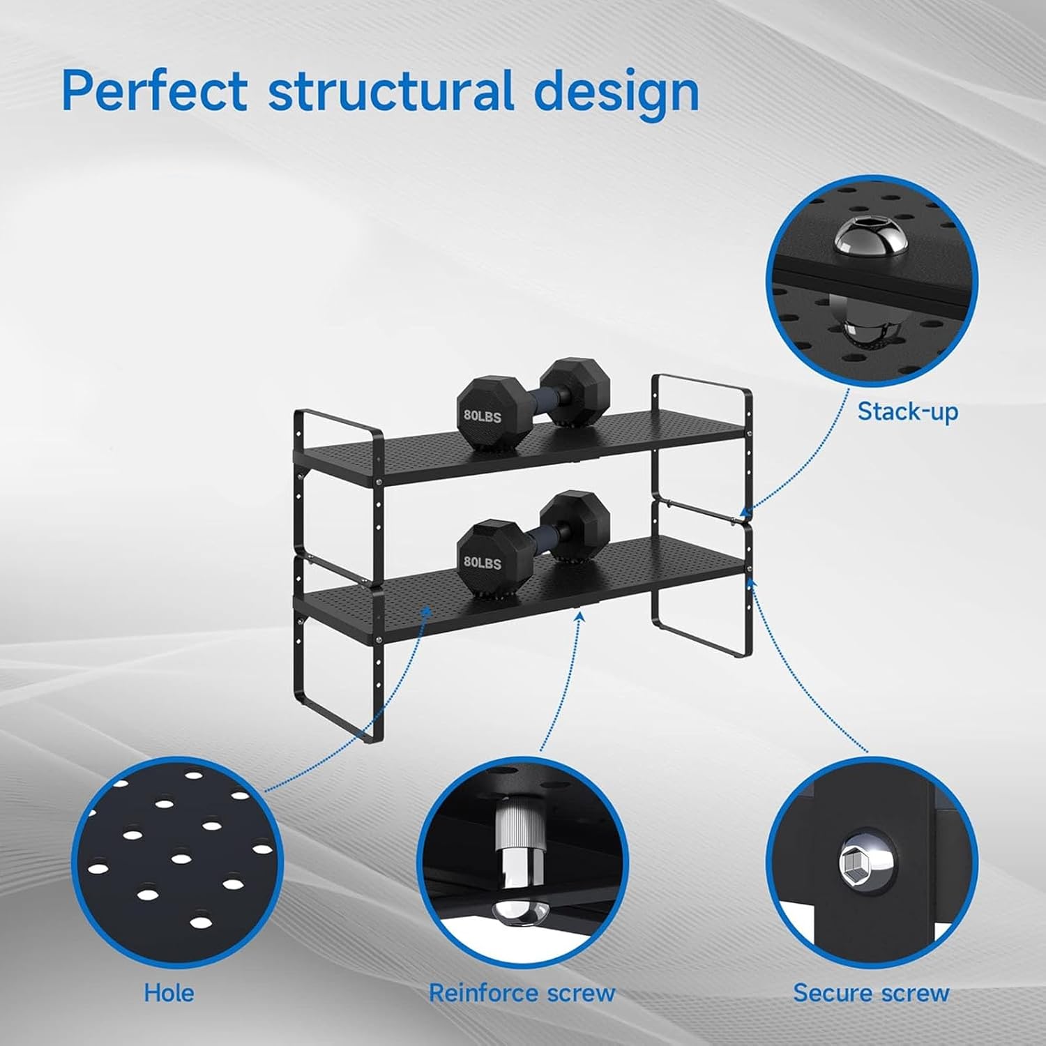 - Expandable &Stackable Cabinet Shelf Organizer: The width and height of the expandable kitchen cabinet shelves can be adjusted according to your needs, which is a very practical storage shelf. The dimensions before expansion are 16.5 "L x 10.2" W x 9.6 "H. Its length can be extended from 16.5" to 27". You can also stack the 2pack shelves together to form a two-layer storage space. Or it can be used as 2 single shelves separately