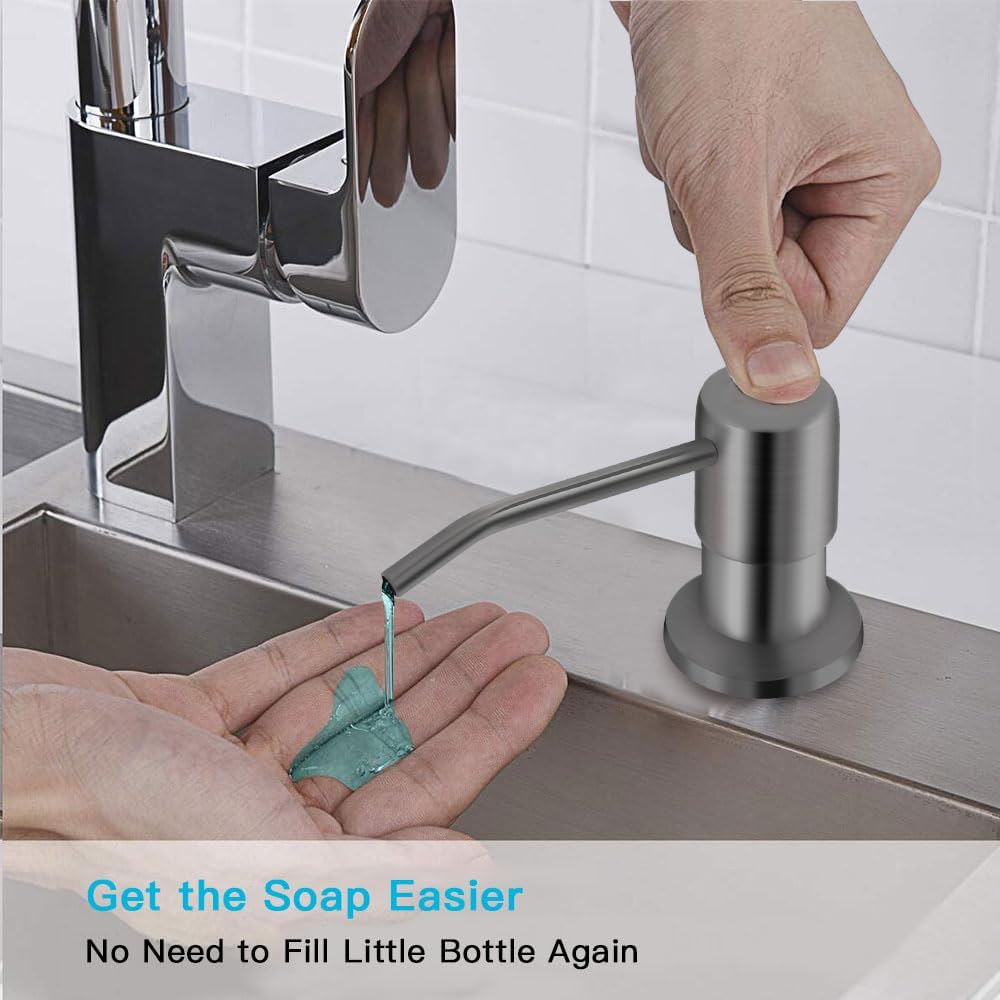 - 【Easy to Install and Use】: Our built-in soap dispenser you can install it on any type of kitchen sink or countertop within a couple of minutes. (Can be installed on any material like granite, stainless steel, wood ). With the long hose, skipping the messy process of refilling the commercial soap dispenser.