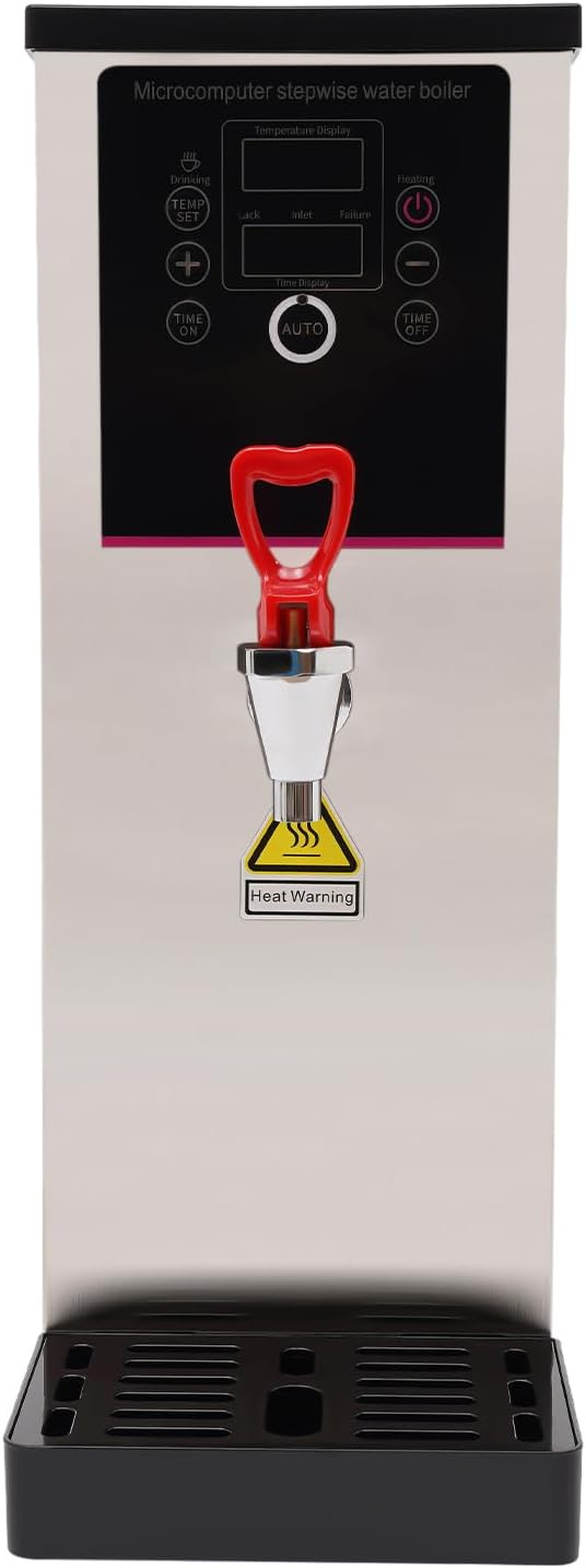 - ăEasy to Use & Good Materială: The smart digital display screen shows you the temperature in real-time and lets you see all the functions at a glance. The sensitive keys allow you to adjust easily. You can also set on and off times for your convenience. This commercial water boiling machine and dispenser mainly uses 304 stainless steel for the material, with high hardness, good performance of corrosion and rust resistance, making you drink it with peace of mind.