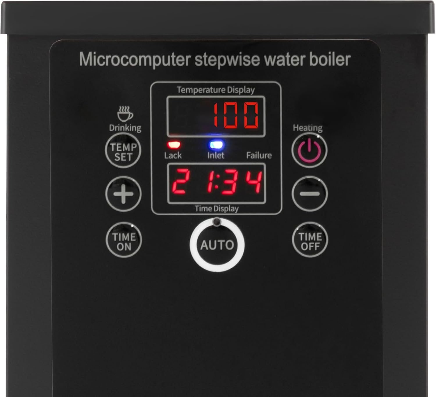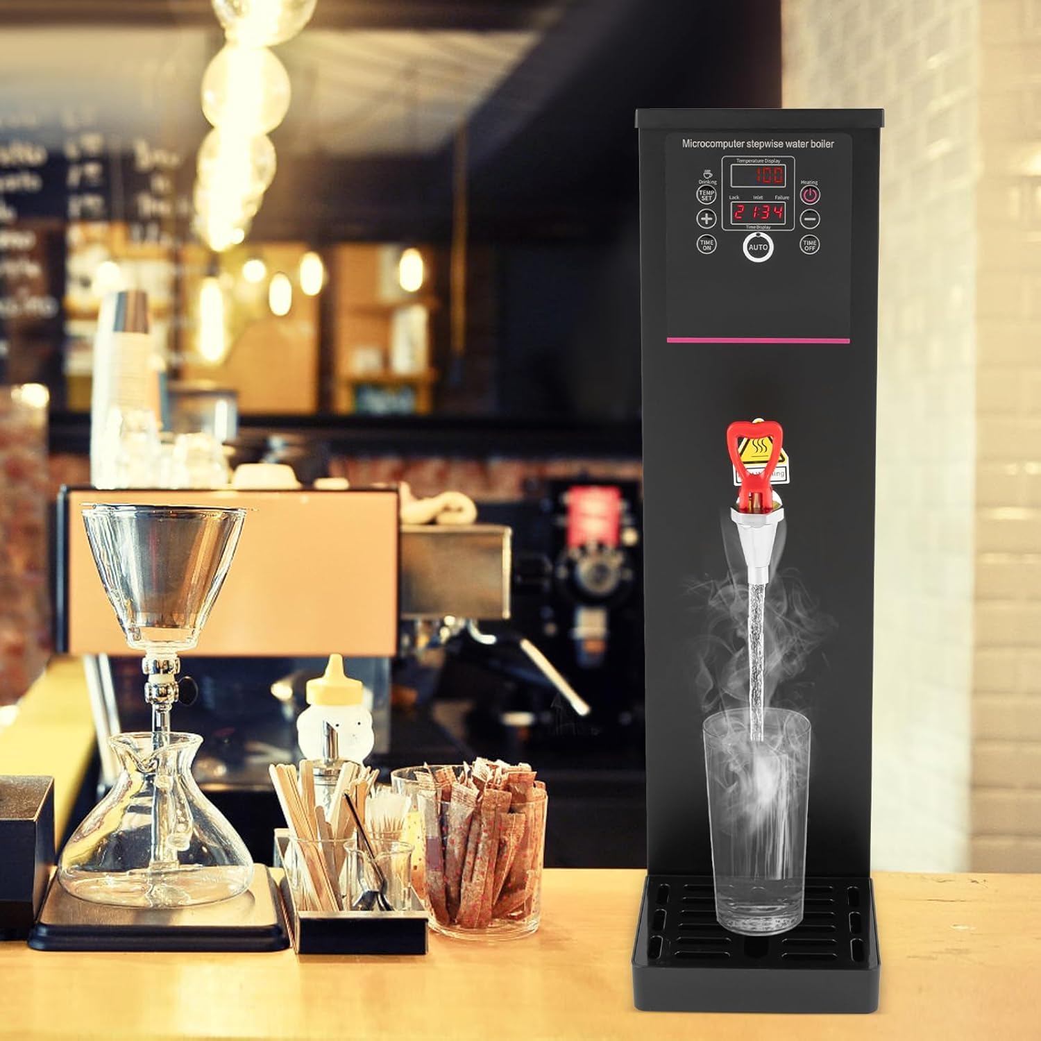 - ăEasy to Use & Good Materială: The smart digital display screen shows you the temperature in real-time and lets you see all the functions at a glance. The sensitive keys allow you to adjust easily. You can also set on and off times for your convenience. This commercial water boiling machine and dispenser mainly uses 304 stainless steel for the material, with high hardness, good performance of corrosion and rust resistance, making you drink it with peace of mind.