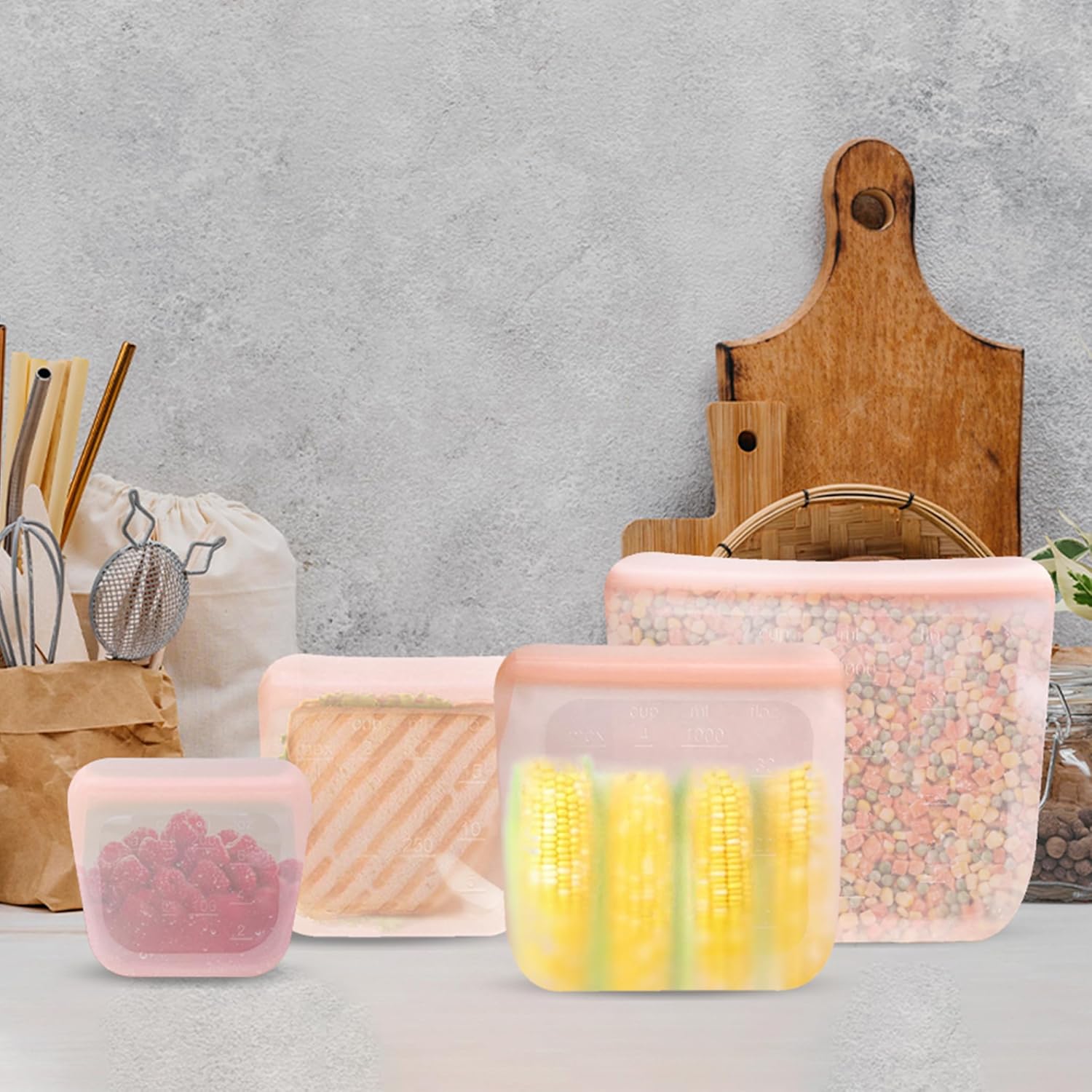 - Effortless Organization & Clear Visibility: Our transparent reusable silicone bags offer quick content recognition, saving time. Easily identify stored items without opening the bag. The sleek design enhances kitchen organization with modern flair.