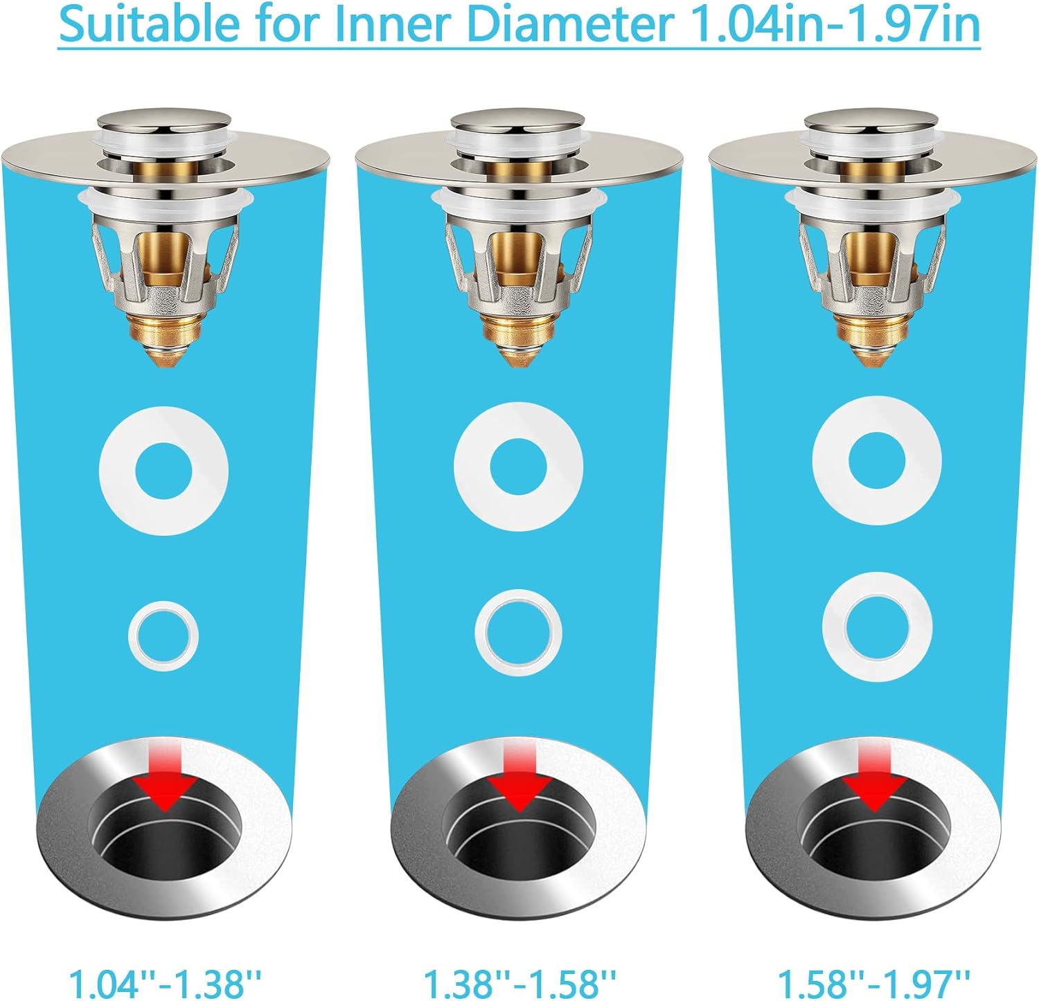 - [ Easy to Install ] No tools are needed, it can be installed easily with bare hands. You just take out the old bounce core and install a new bounce core. Anyone can install the pop-up drain because of its simple structure. If you want to use it for a larger sink hole diameter, you can use the rubber ring we included to increase the inner diameter of the sink plug.