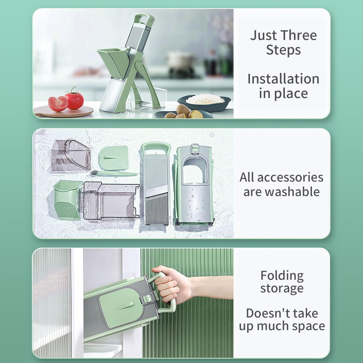 ShanSon Safe Mandoline Slicer,French Fry Cutter,Multifunctional Vegetable Chopper,Mandoline Potato Slicer with 30+ Presets & Thickness Adjuster, Chopping Artifact for Kitchen Meal Prep,Upgraded Green