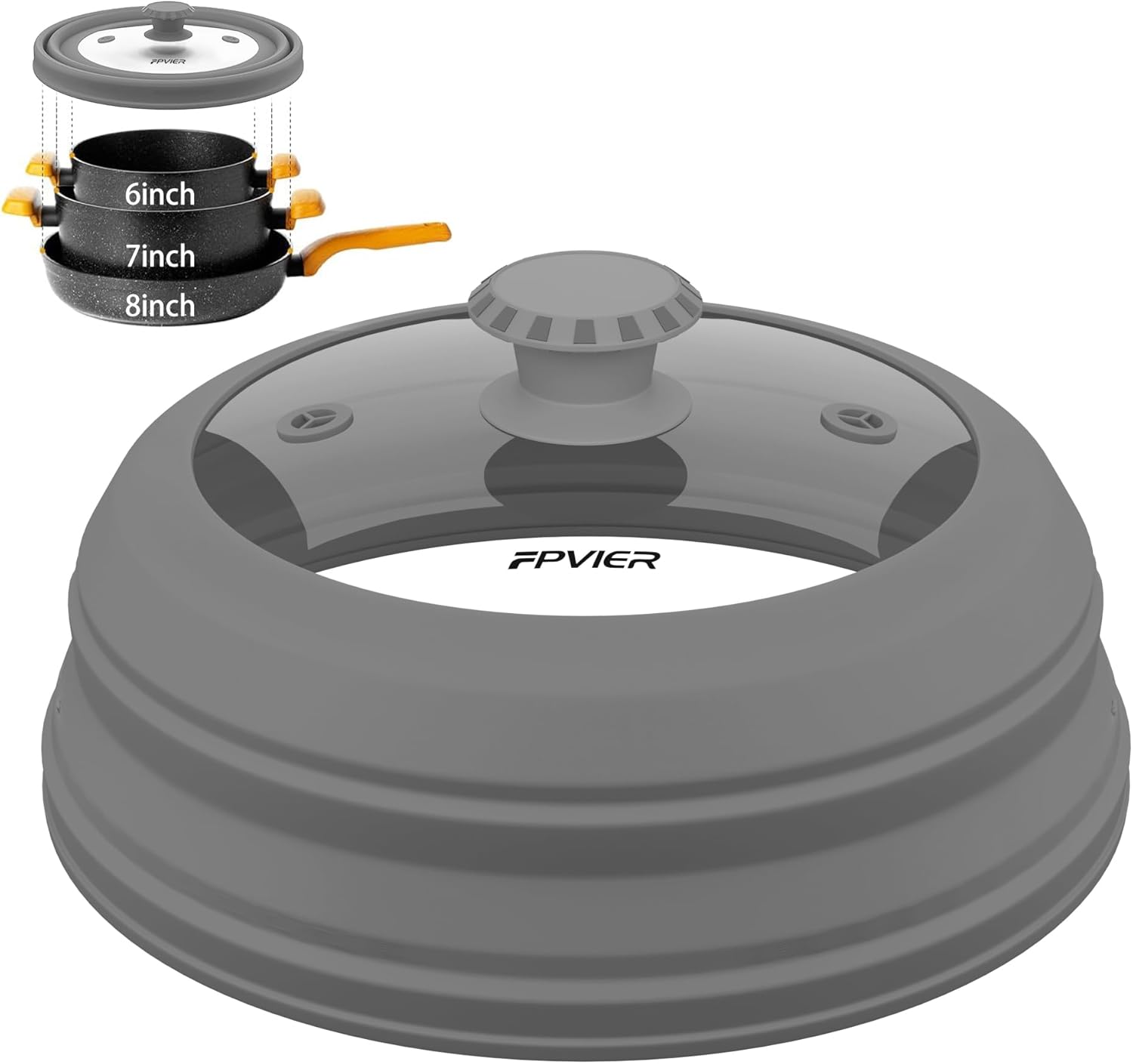 - 【Patent Collapsible Design】Experience the excellence with FPVIER's Patent Collapsible Silicone Dome, the diameter is 9 inch (22.86 cm), uniquely crafted to cover plates & bowls from 6"-8" with ease, providing a big surprise in the compact storage form.