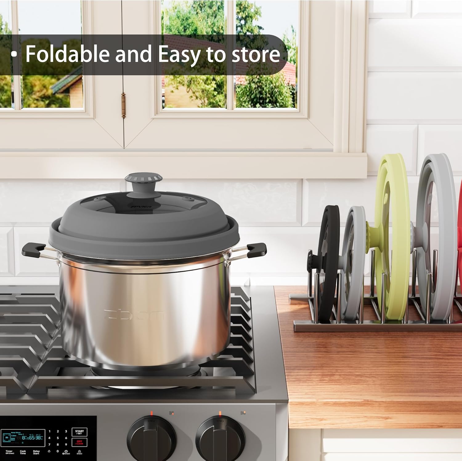- 【SILICONE HANDLE】 The silicone handle on the top is anti-scalding and safe, so you can open it without spending a lot of time waiting for it to cool down without having to wait for it to cool