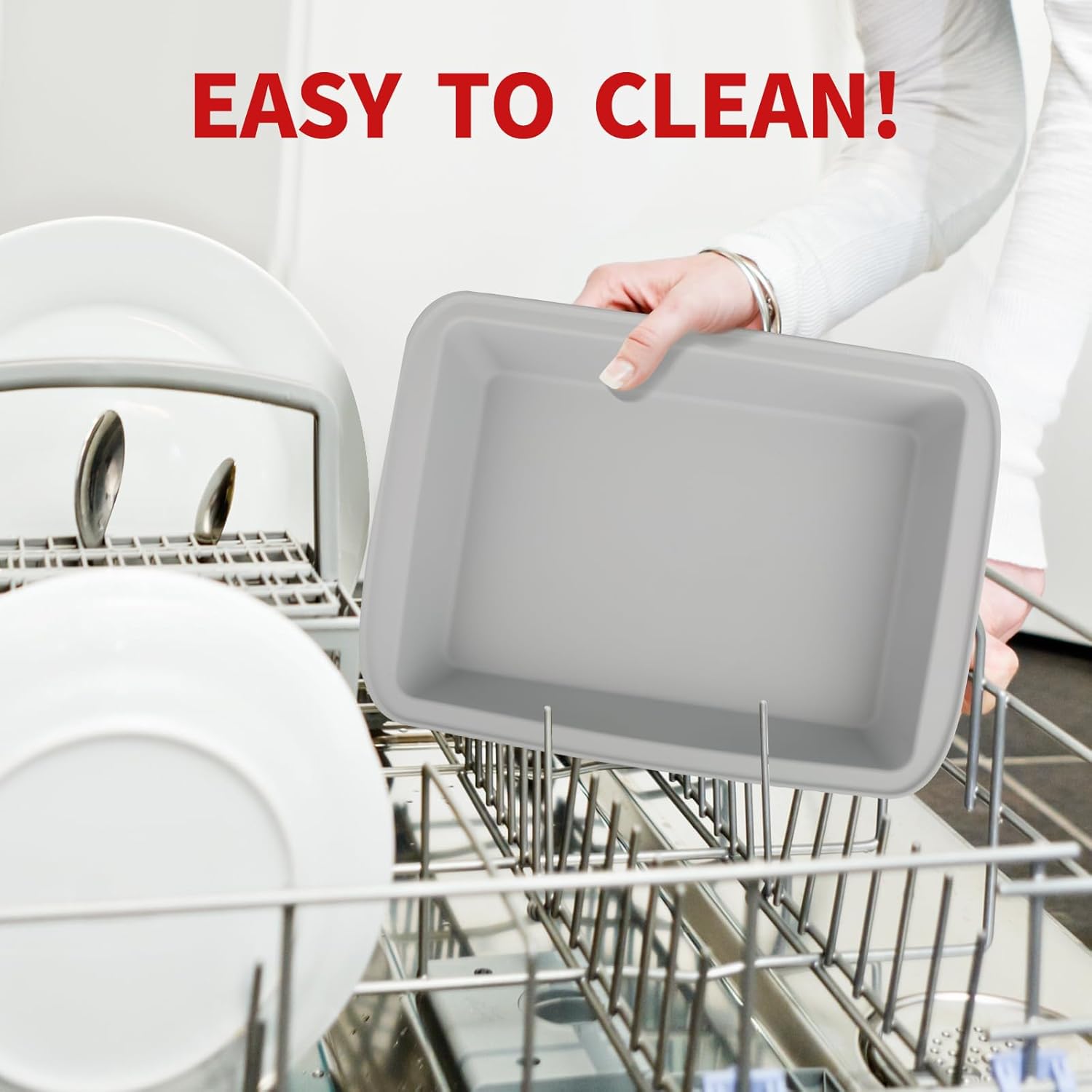 Silicone Baking Mold, Detroit Style Pizza Pan, Rectangular Baking Dish with Handles, Compatible with Fancy Panz, for Lasagna, Cake, Brownie or Family Dinner, 12.6 x 9.8 x 2.1 Inch (2 Pack, Grey)