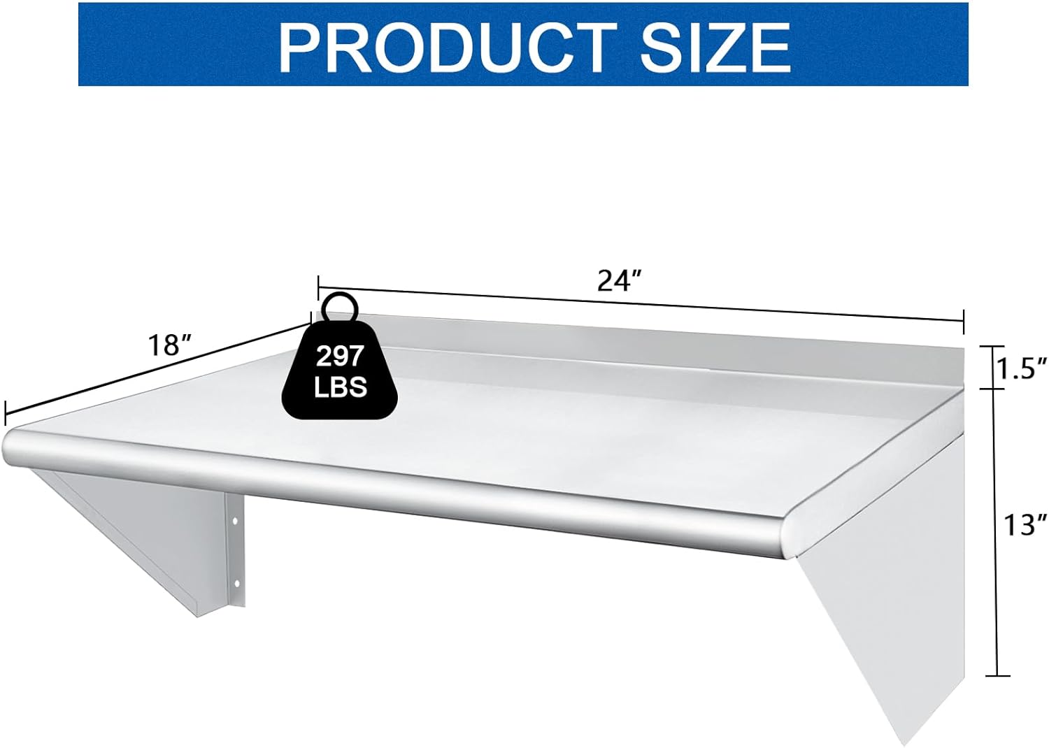 HARDURA Stainless Steel Shelf 18" x 24", 297lb Commercial Shelves Wall Mount Metal Shelving with Backsplash and Brackets for Kitchen, Restaurant, Laundry Room and Home
