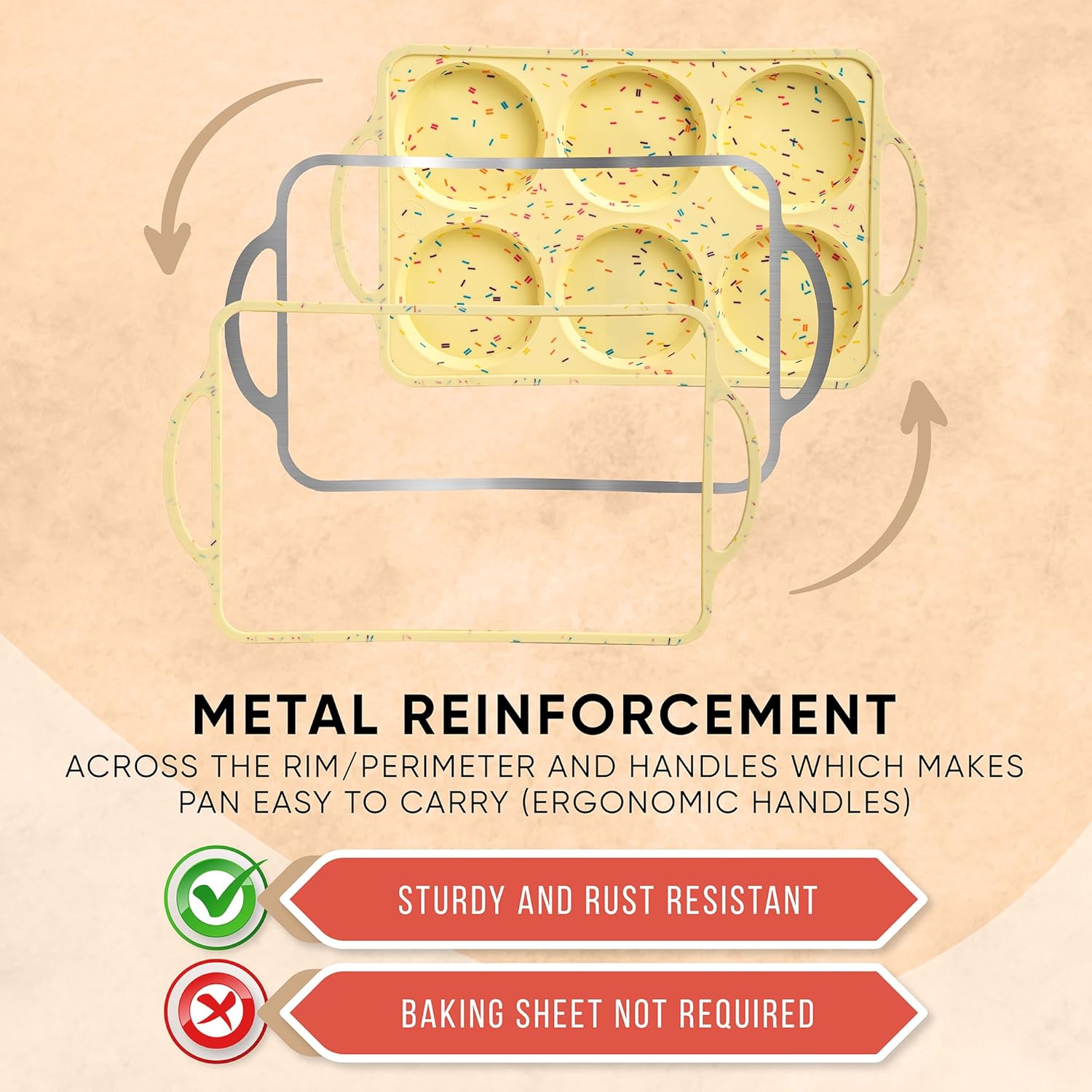 - EVEN BAKING WITHOUT THE MESS β Our muffin pan silicone design ensures even heat distribution for beautifully golden tops. Whether you prefer deep muffins or shallow whoopie pies, this large muffin pan jumbo delivers perfect results every time.
