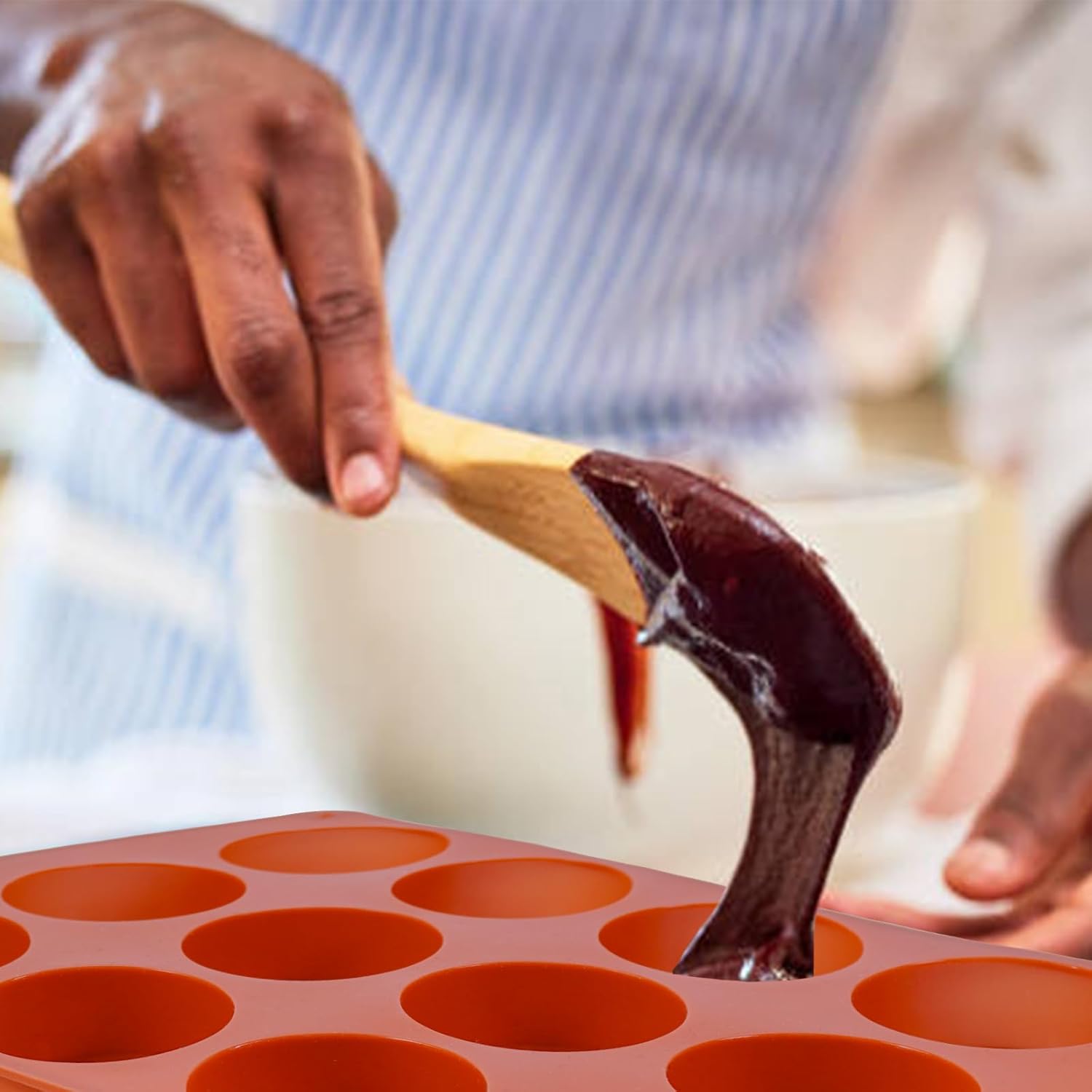 Muffin Pan, 12 Cup Silicone Cake Moulds for Baking, Silicone Muffin Cases, Non Stick Muffin Tin, Cookies Jelly Mould - BPA Free and Dishwasher Safe