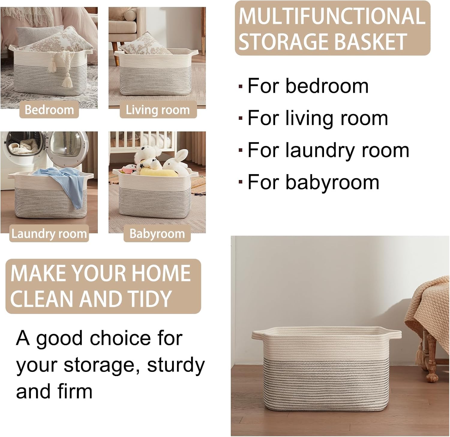 - 100% Cotton Rope Basket for Blankets:OIAHOMY woven basket is made of 100% natural cotton, chemical and odor free, there are no sharp or hard edges to scratch floos, and safe for kids and pets. It is more firm than plastic basket
