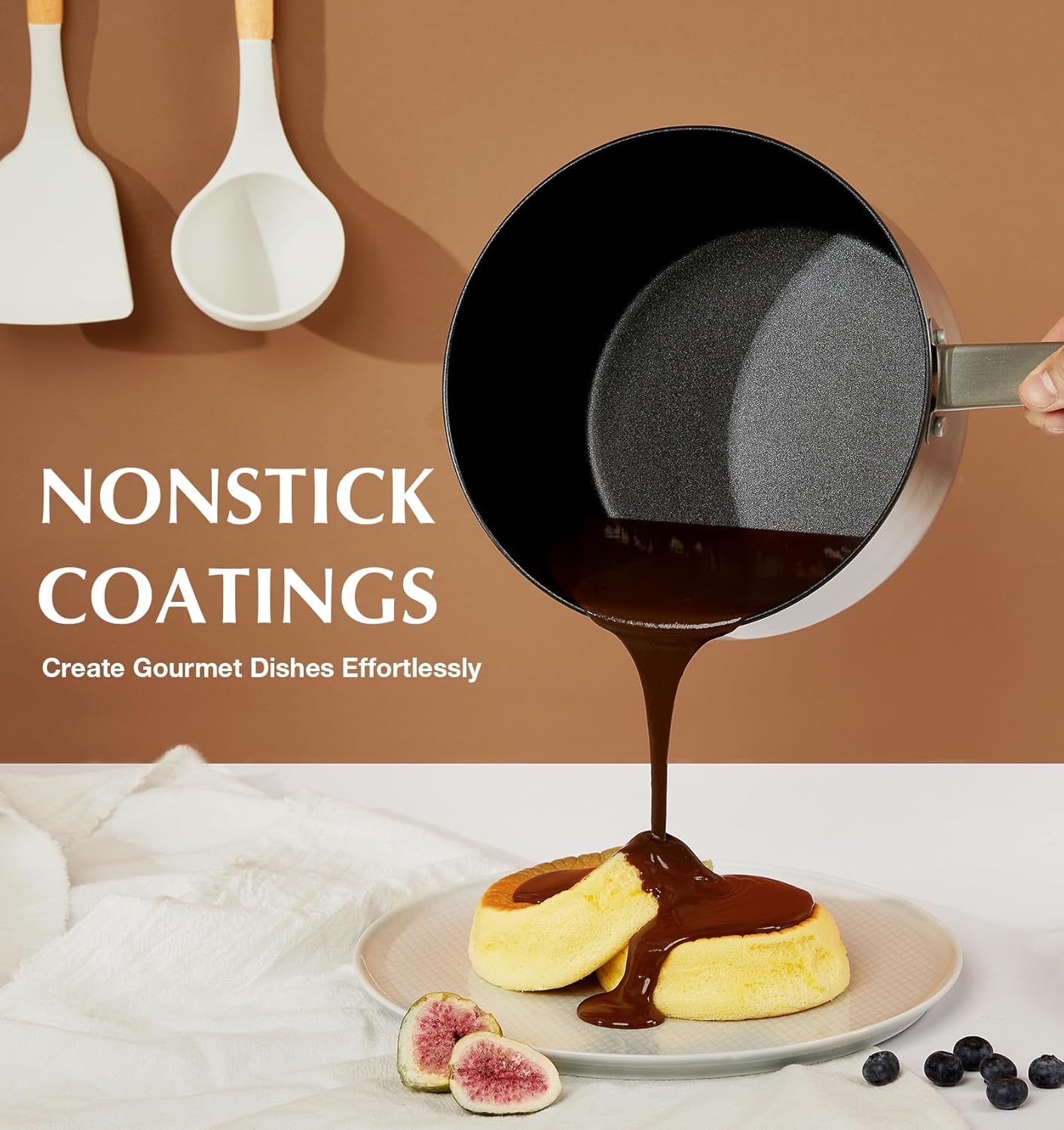 - Ultra Nonstick & Healthy Interior: Our stainless steel saucepan boasts a nonstick coating free from APEO and PFOA, ensuring a healthier cooking experience. Effortlessly pour silky sauces like chocolate or sauce with its exceptional nonstick performance. Enjoy the ease of cooking with our 2 quart saucepan.