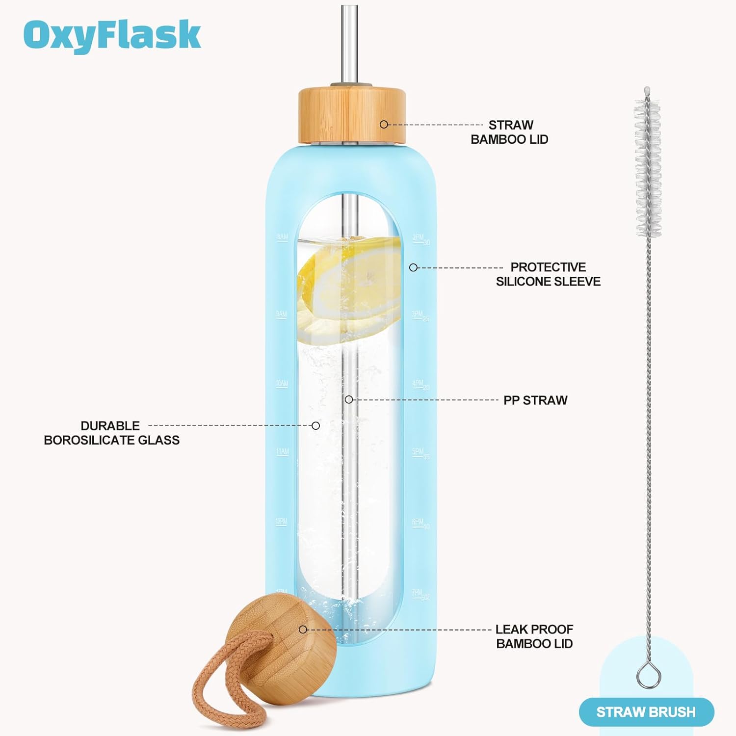 - TRACK DAILY HYDRATION GOALS: Stay on top of your water intake with this glass water bottle with time marker, featuring clear volume indicators. Whether you're at work or exercising, itβs a simple, effective tool to meet your health and hydration goals.