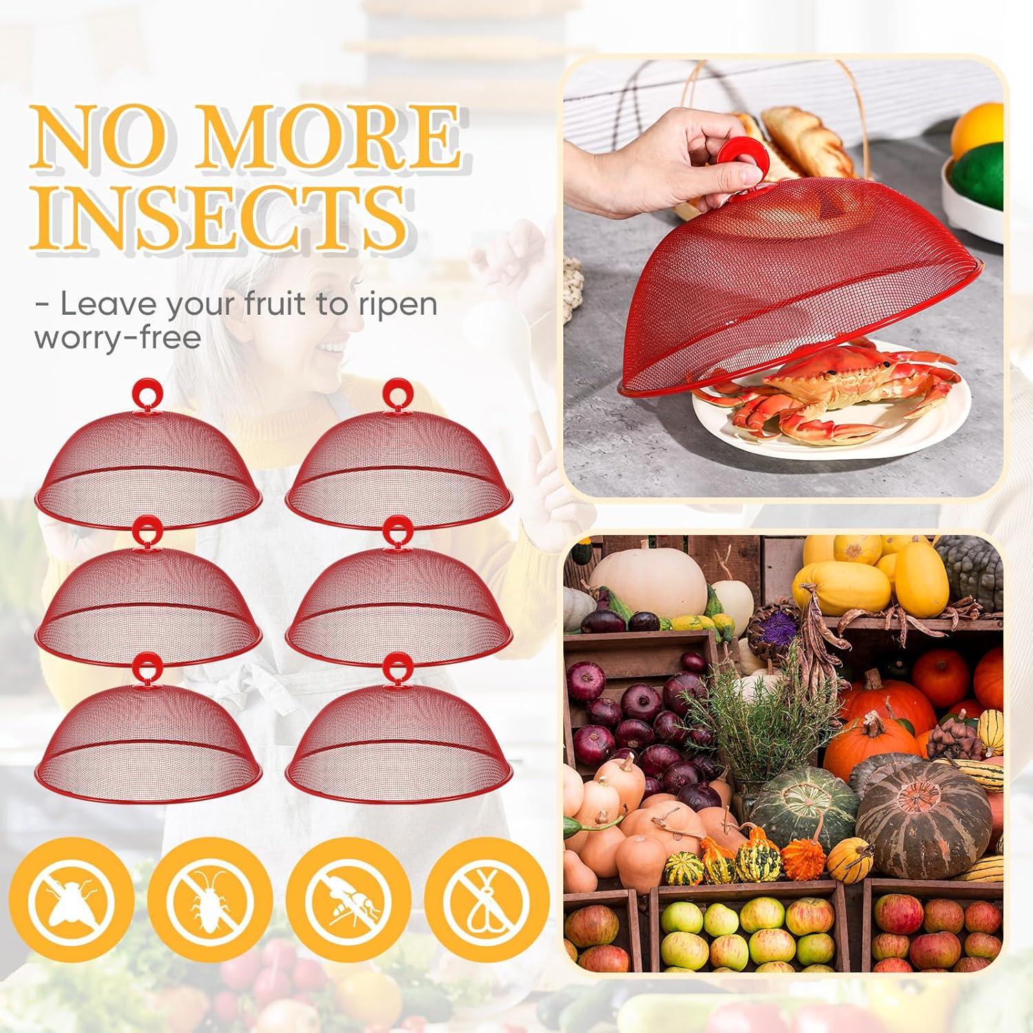 Gerrii 6 Pcs Metal Mesh Food Cover Outdoor Mesh Food Tents Dome Screen Plate Covers for Dinner Plates Reusable Fruit Fly Nets Picnic Food Umbrella for Table, BBQ, Camping, Party (Red,11 Inch)