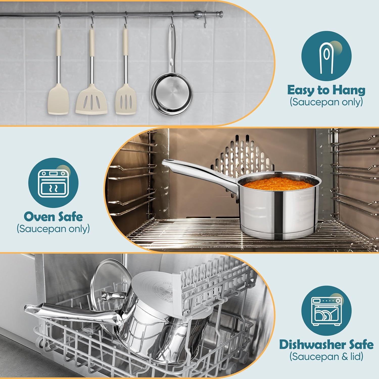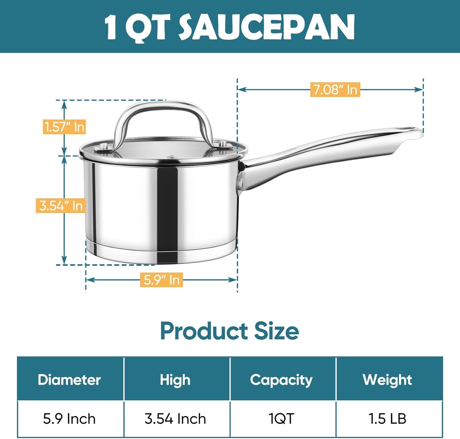 - 【Versatile 1 Qt Saucepan】1 Qt small saucepan is designed for people who is single to use, Fitting lid helps to retain heat and quickly heat up the food in the pan, Good for warming milk, making sauces, simmering soup or even cooking small portions of food, And stainless steel saucepan could be used in oven for making cake, bread etc (but lid couldn’t), From stovetop cooking to oven baking, To meet your many ways of cooking need