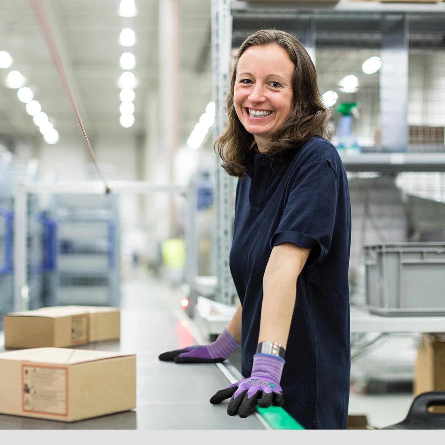 KAYGO Safety Work Gloves MicroFoam Nitrile Coated, 3 Pairs KG18NB,Seamless Knit Nylon Glove for Men and Women, Ideal for Automotive,Warehouse,Construction (XL, Purple)