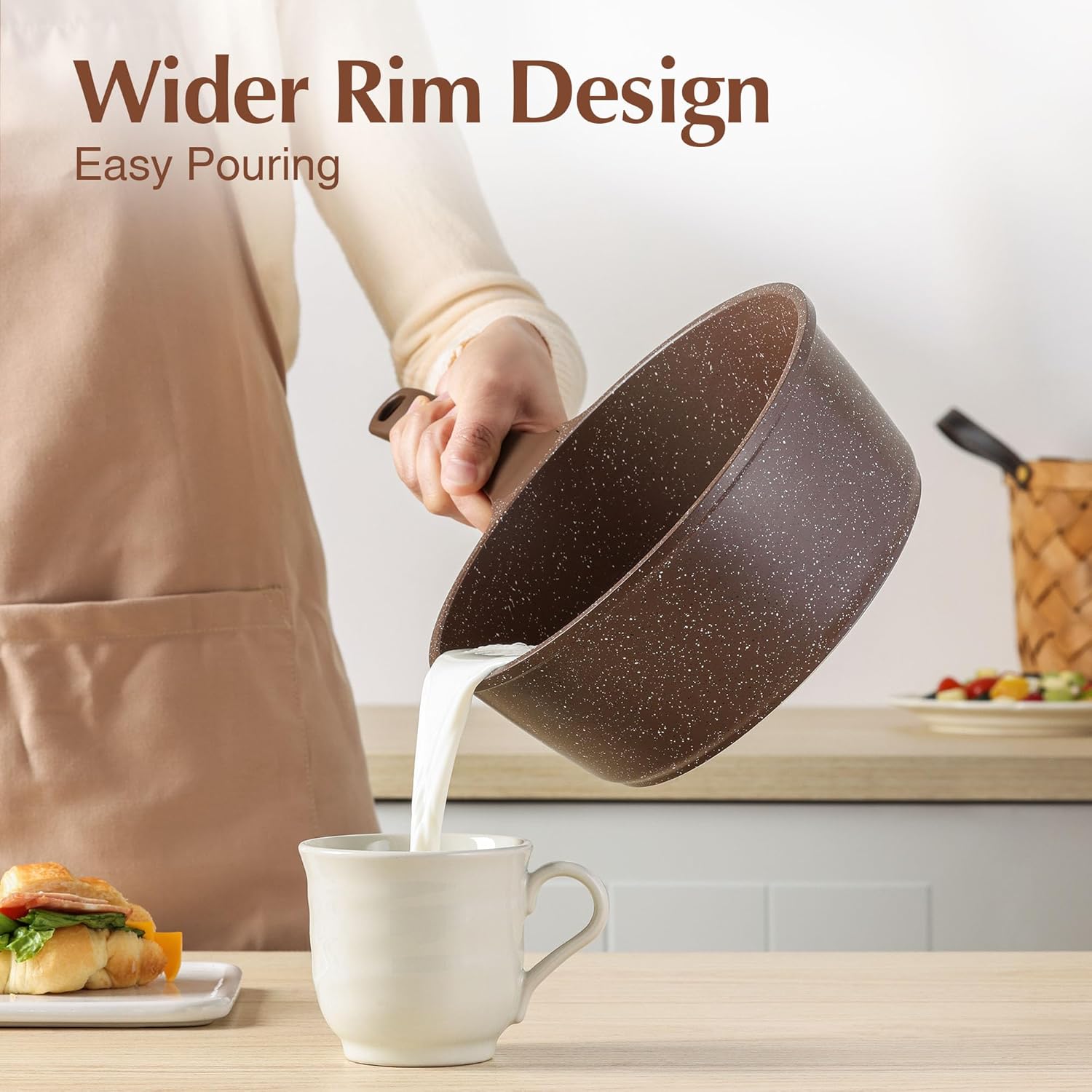 SENSARTE Saucepan Nonstick with Lid 2.5 Quarts Granite Coating Sauce Pot Medium Kitchen Cooking Pot, Induction Comptable, Free of Intentionally Added PFOA