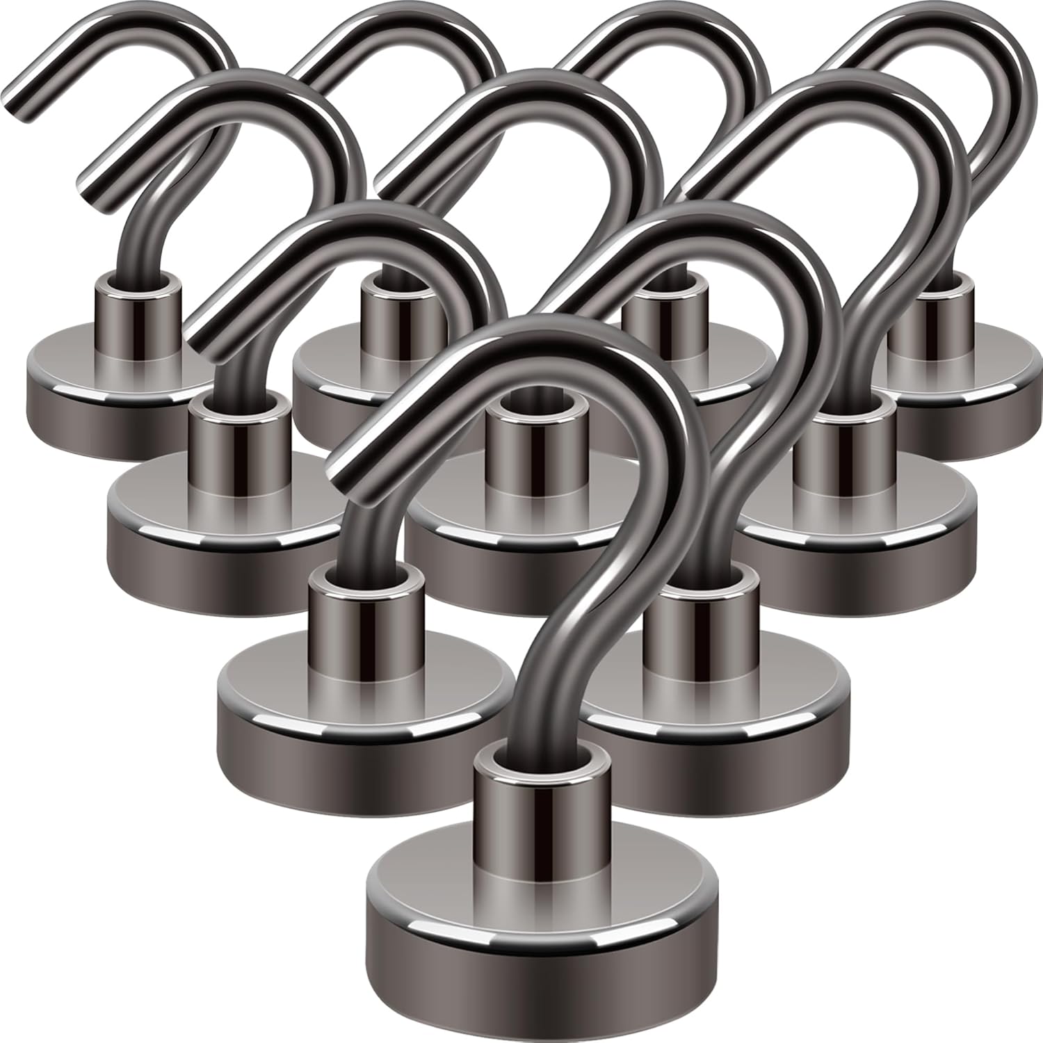 Neosmuk Magnetic Hooks,30lb+ Heavy Duty Earth Magnets with Hook for Refrigerator, Extra Strong Cruise Hook for Hanging, Magnetic Hanger for Cabins, Grill (Gunblack, 10 Pack)